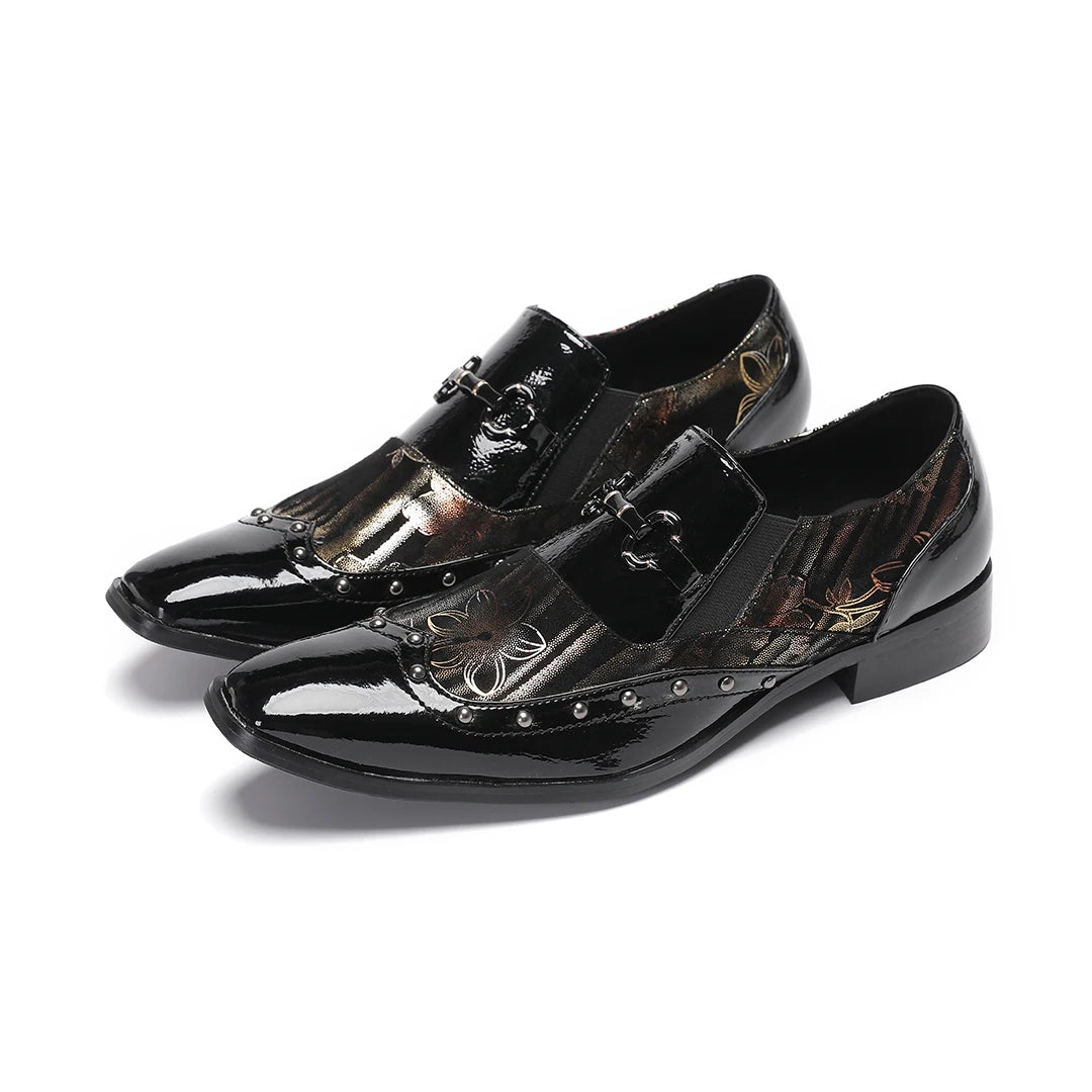 Classic black printed men's shoes pointed casual business assembly shoes fashionable party wedding shoes ayakkabı mens dress