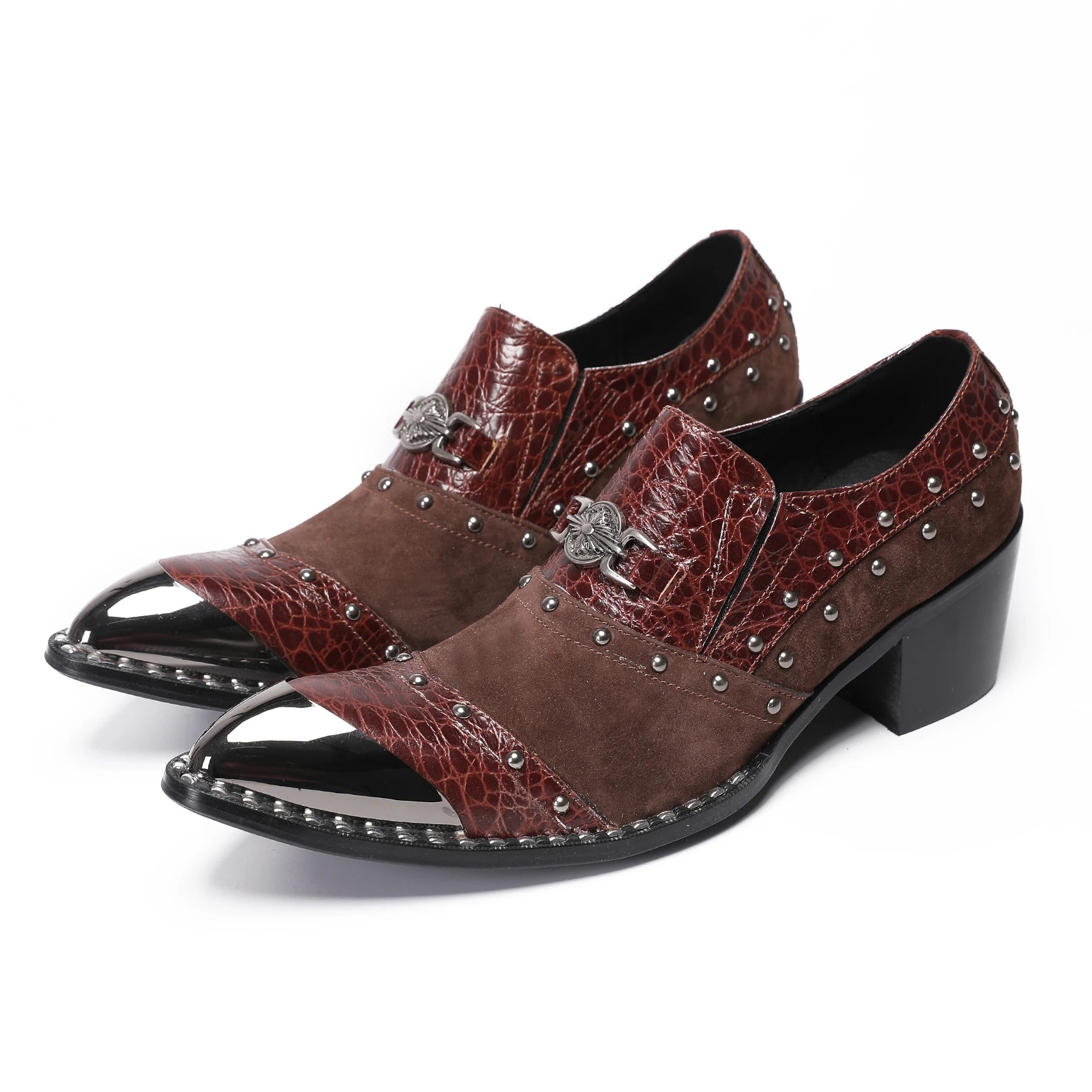 Classic new shallow mouth men's shoes, spring and autumn high heels, leather color blocked business party wedding shoes