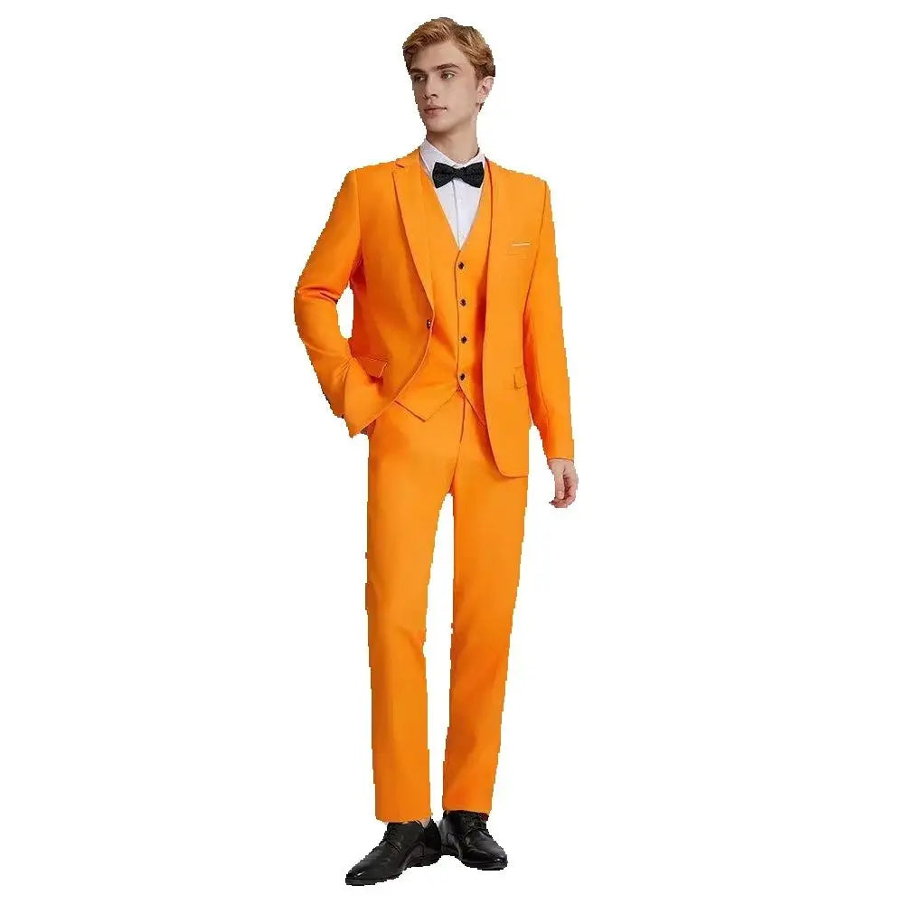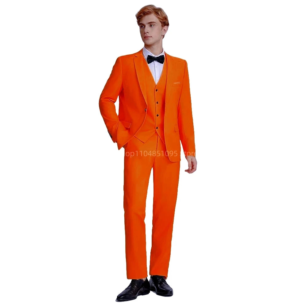 Classic Orange Suit for Men Business Work Clothes Office Formal Slim fit Blazer Pants Vest 3-piece Set Groom Wedding Tuxedo