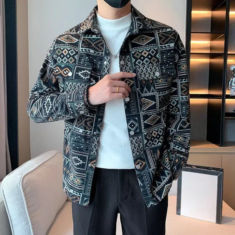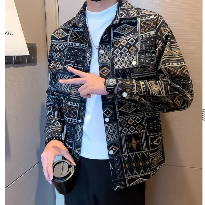 Cowboy Coat for Men Autumn Cargo with Print Denim Jackets Man Cowgirl Fashion Joker Trendy Washed Rock Korean Popular Clothes