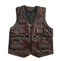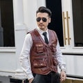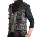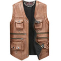 Cowhide Genuine Leather Vest Men Brown Waistcoat Male Sleeveless Jacket Thick High Quality Motorcycle Vest Multi Pocket Zipper