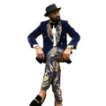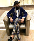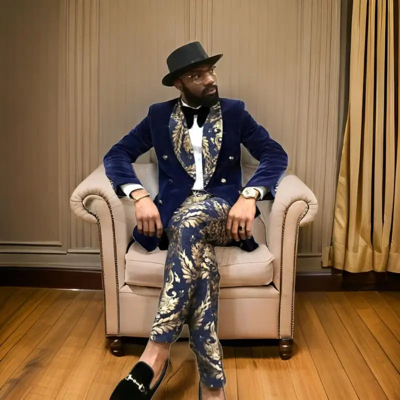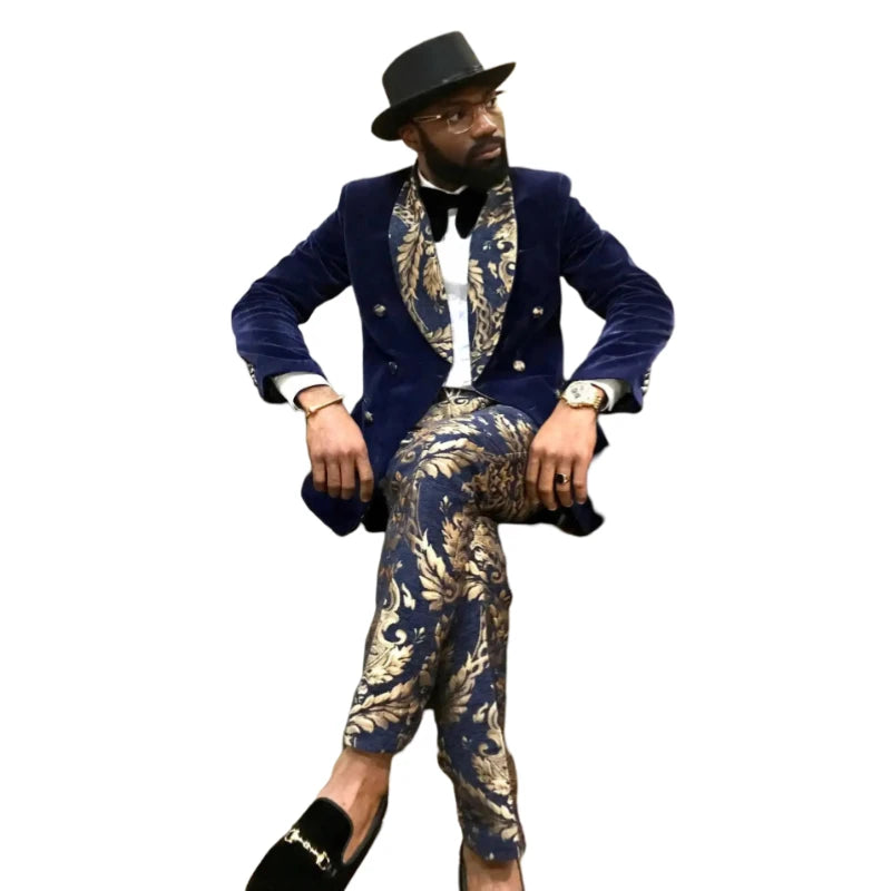 Double Breasted Suits for Men Wedding Navy Blue Floral Groom Tuxedo Velvet Blazer with Pants Formal Shawl Lapel Party Wear
