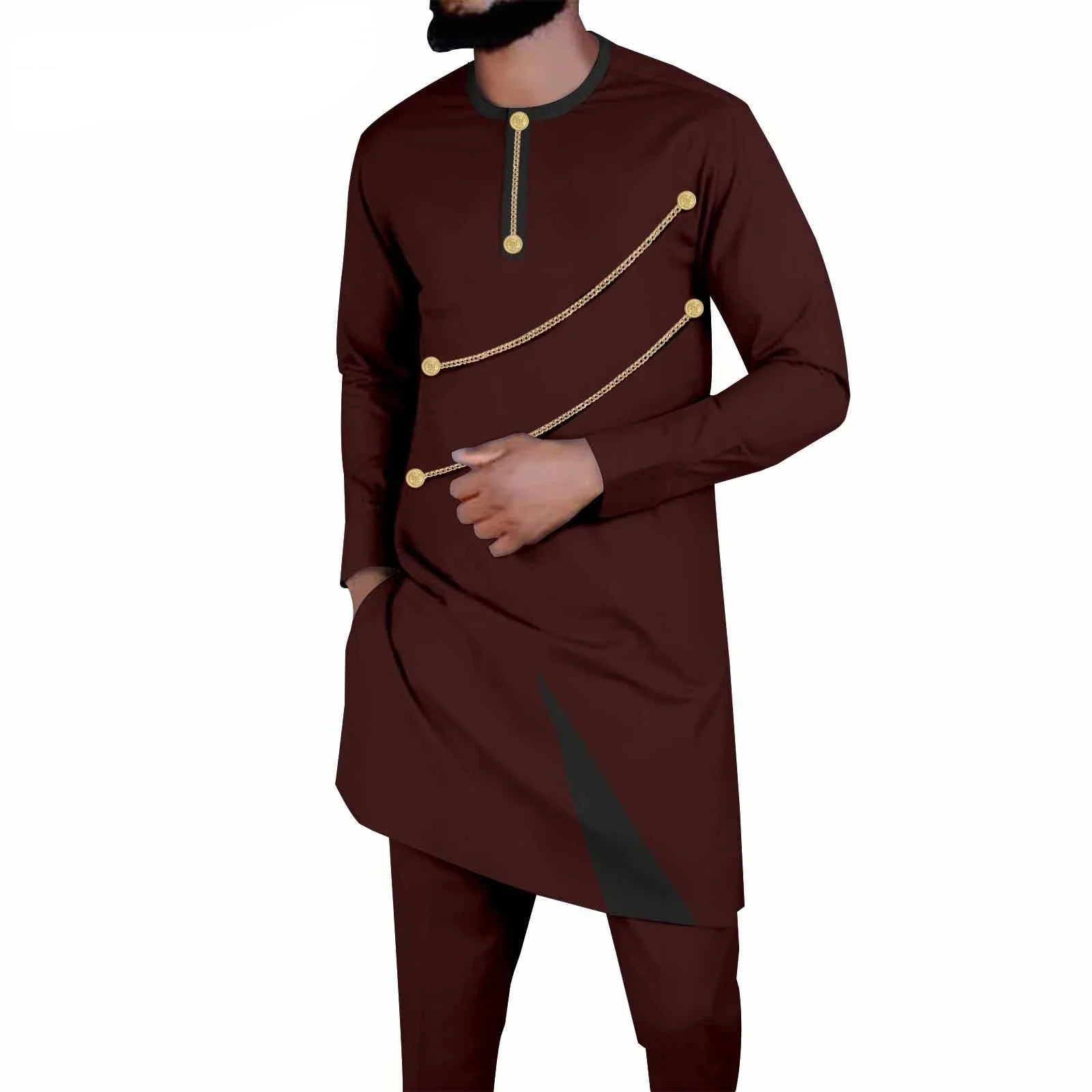 Explosive African Ethnic Solid Color Men's Casual Suit Top + Pants Ropa Hombre Roupas Maculinas T Shirt for Men Suits for Men