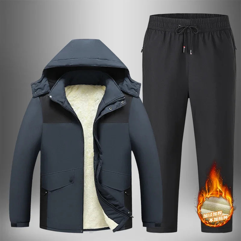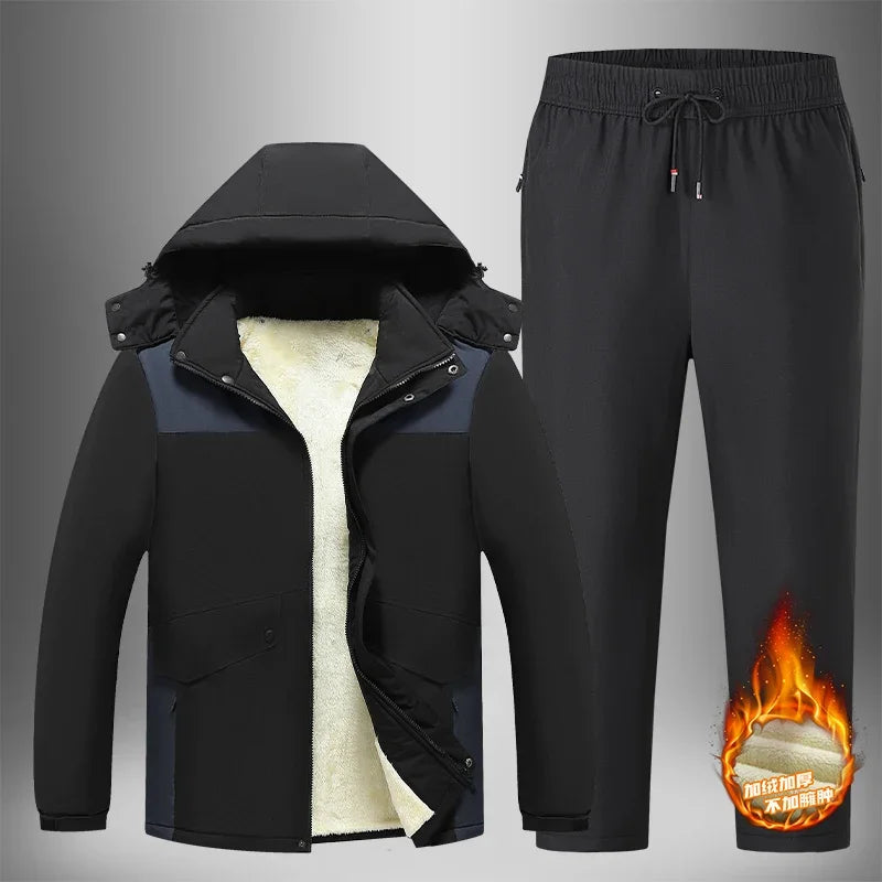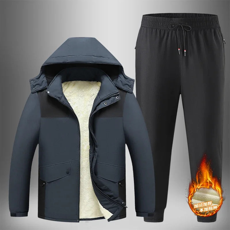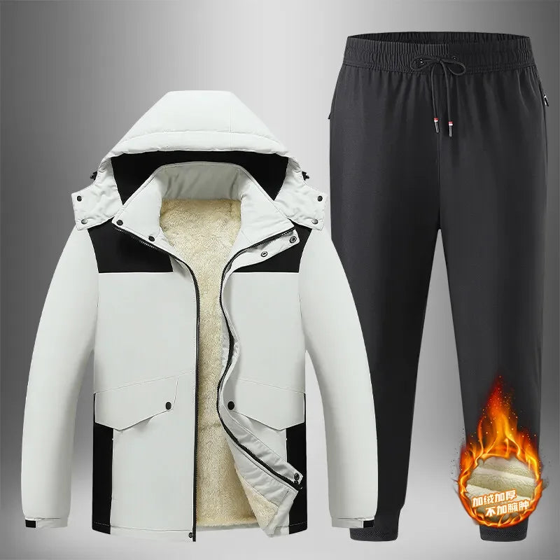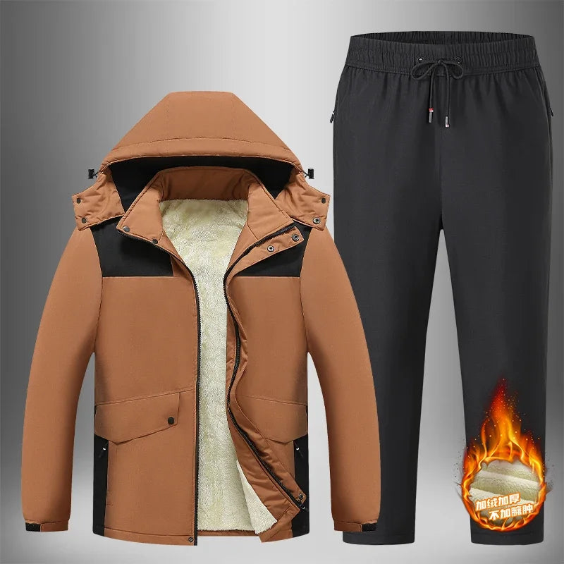 Fleece Waterproof Tracksuits Winter Thick Two Pieces Set Mens Casual Winter Outdoor Track Suit Jacket+Pants Warm Hiking Jacket