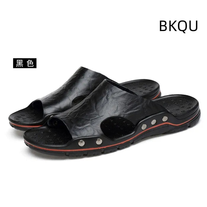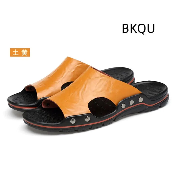 Genuine Leather Slippers for Men Casual Big Size Wear-Resistant Non-slip Fashion Flat Breathable Comfortable Shoes Summer Main
