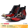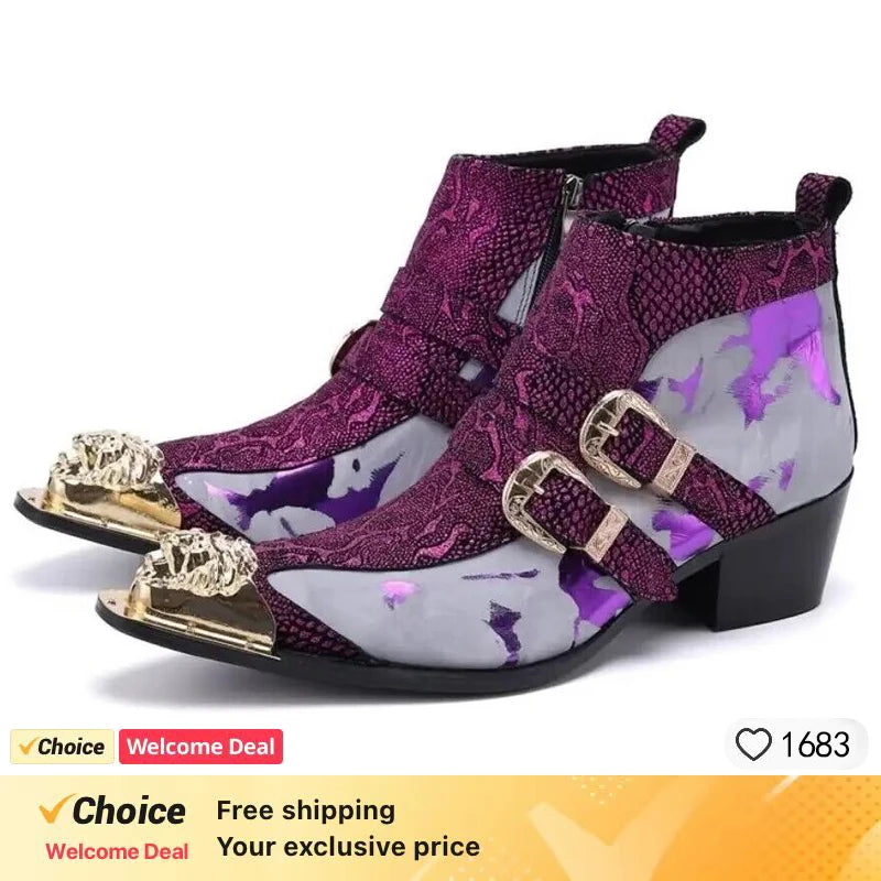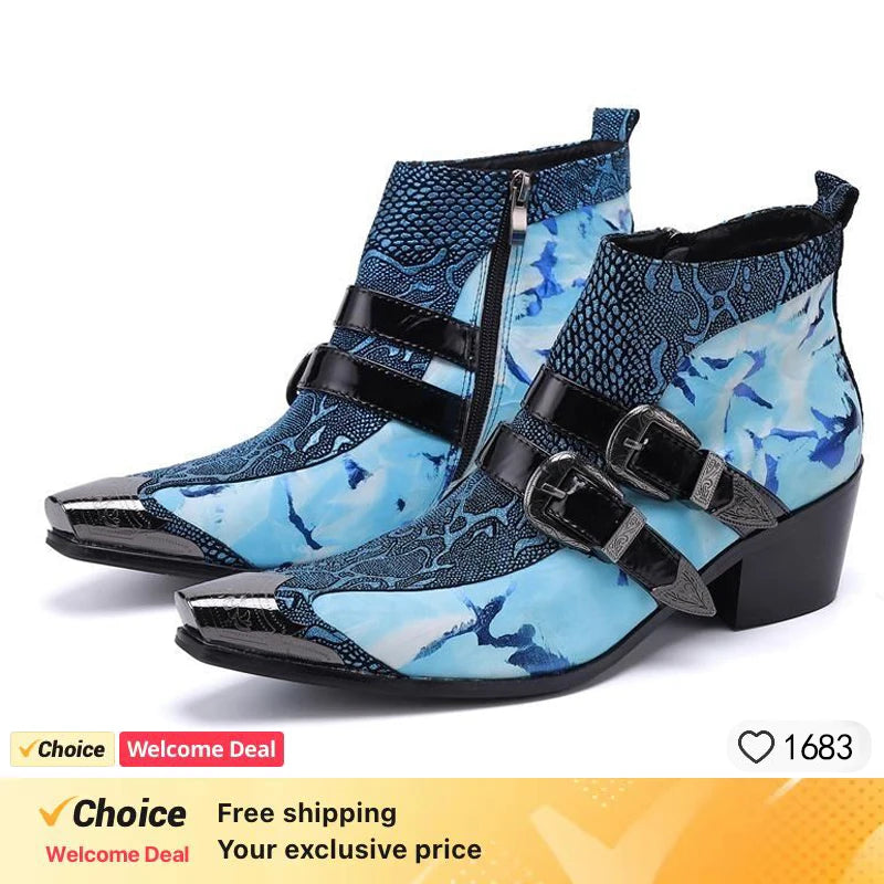 Graffiti Ankle Boots for Men Pearl Metal Decor High Heels Leather Western Men's Boots Zip Street Style Man Shoes High Quality