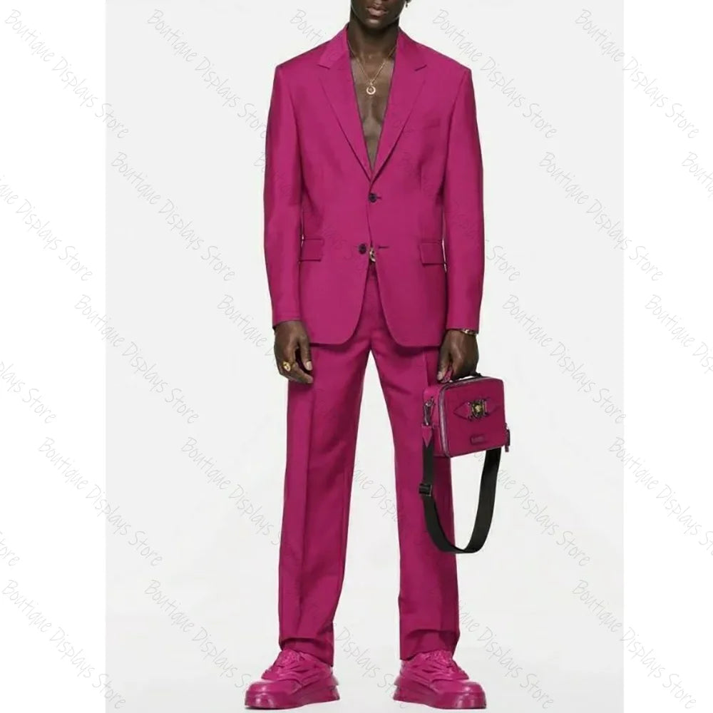Handsome Solid Color Single Breasted Men Suit Two Pieces(Jacket+Pants) Lapel Outfits Chic Casual Party Prom Wedding Set