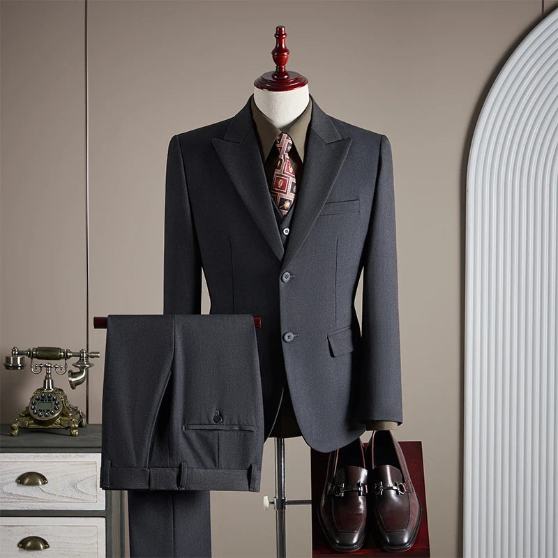 High-end wool suit set for men, fashionable and stylish business casual three-piece suit, Tencel suit, groom's wedding dress