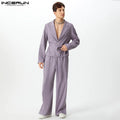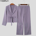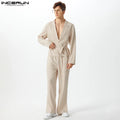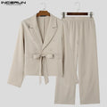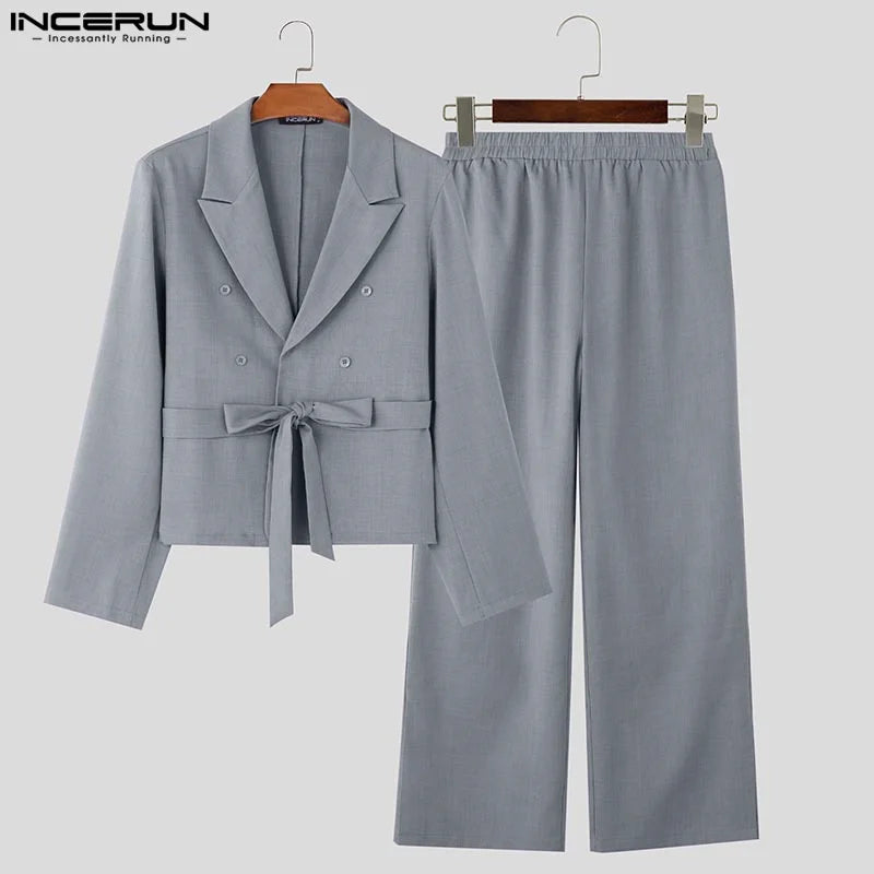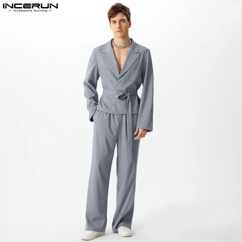 INCERUN 2024 American Style Sets Stylish New Men Tie Double Breasted Cropped Suit Straight Leg Pants Male Clubwear Suit 2 Pieces