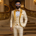 Ivory And Yellow Men Suit Formal Wedding Party Groom Groomsman Business Male Tuxedos Customized 3 Piece Set Jacket Vest Pants