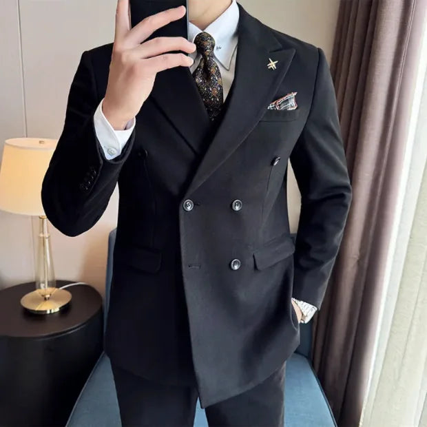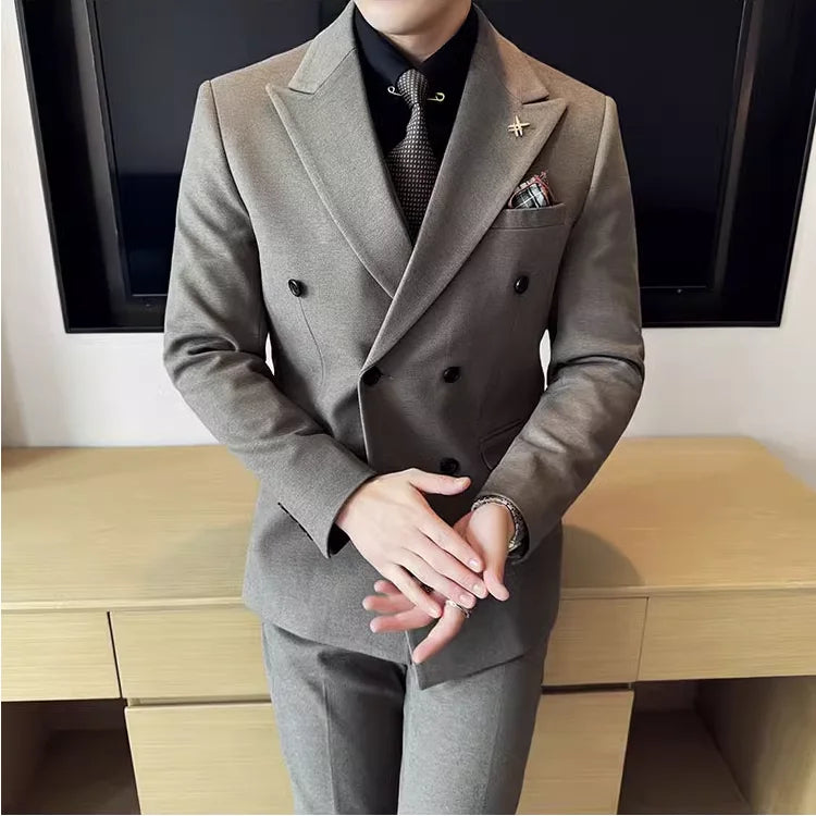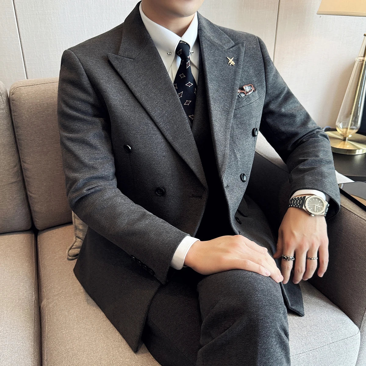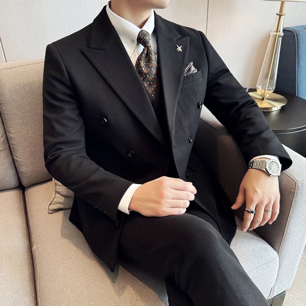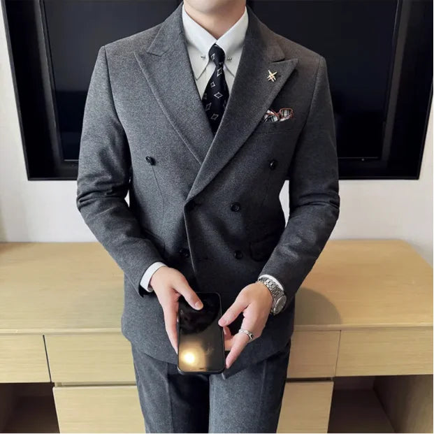 (Jacket+Pant) Autumn Winter Thickened Woolen Suit 2025 New High Quality Slim Business Tuxedo Fashion Wedding Social Suits