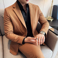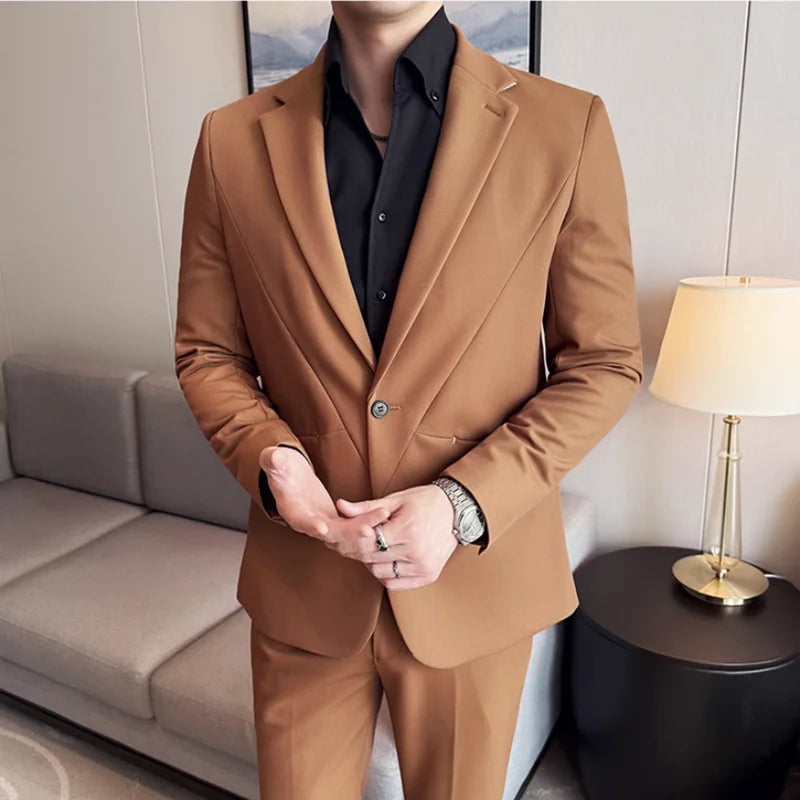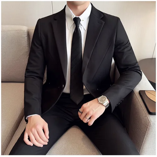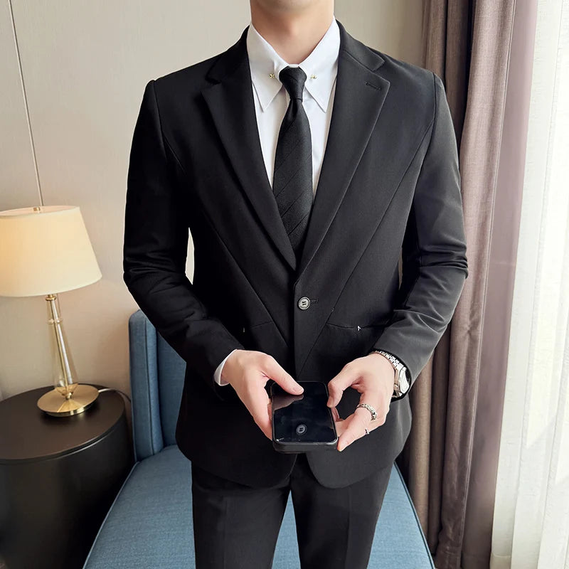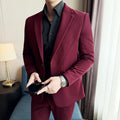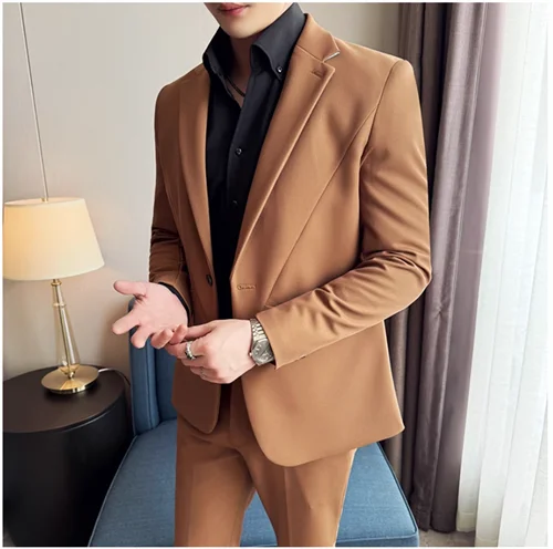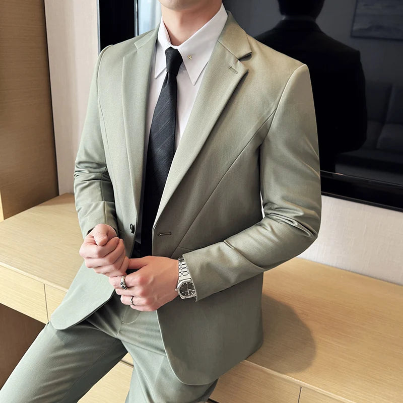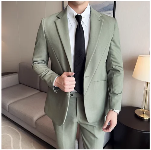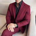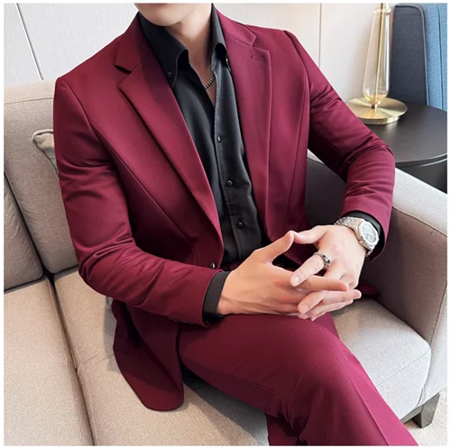 (Jacket+Pant) New Men Pure Color Business Social Wedding Party Suit Fashion Male Banquet Party Slim Fit Dress Blazer and Trouser