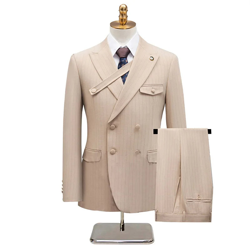( Jacket + Vest + Pants ) Prom Groom Tuxedos Latest Designs Male Wedding Suits 3Pcs Set Men's Striped Casual Business Suit