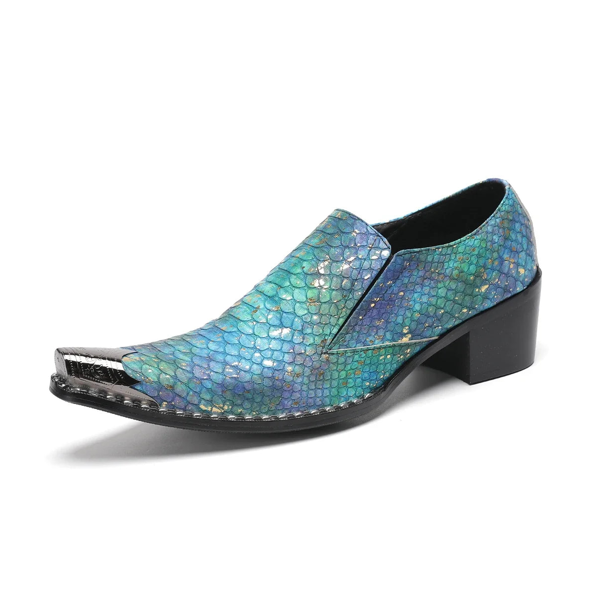 Large Breathable Men's Shoes with Metal Toe Men's Casual T-shirt Shoes with Rivets Business Wear Shoes, Snake Patterned Loafers
