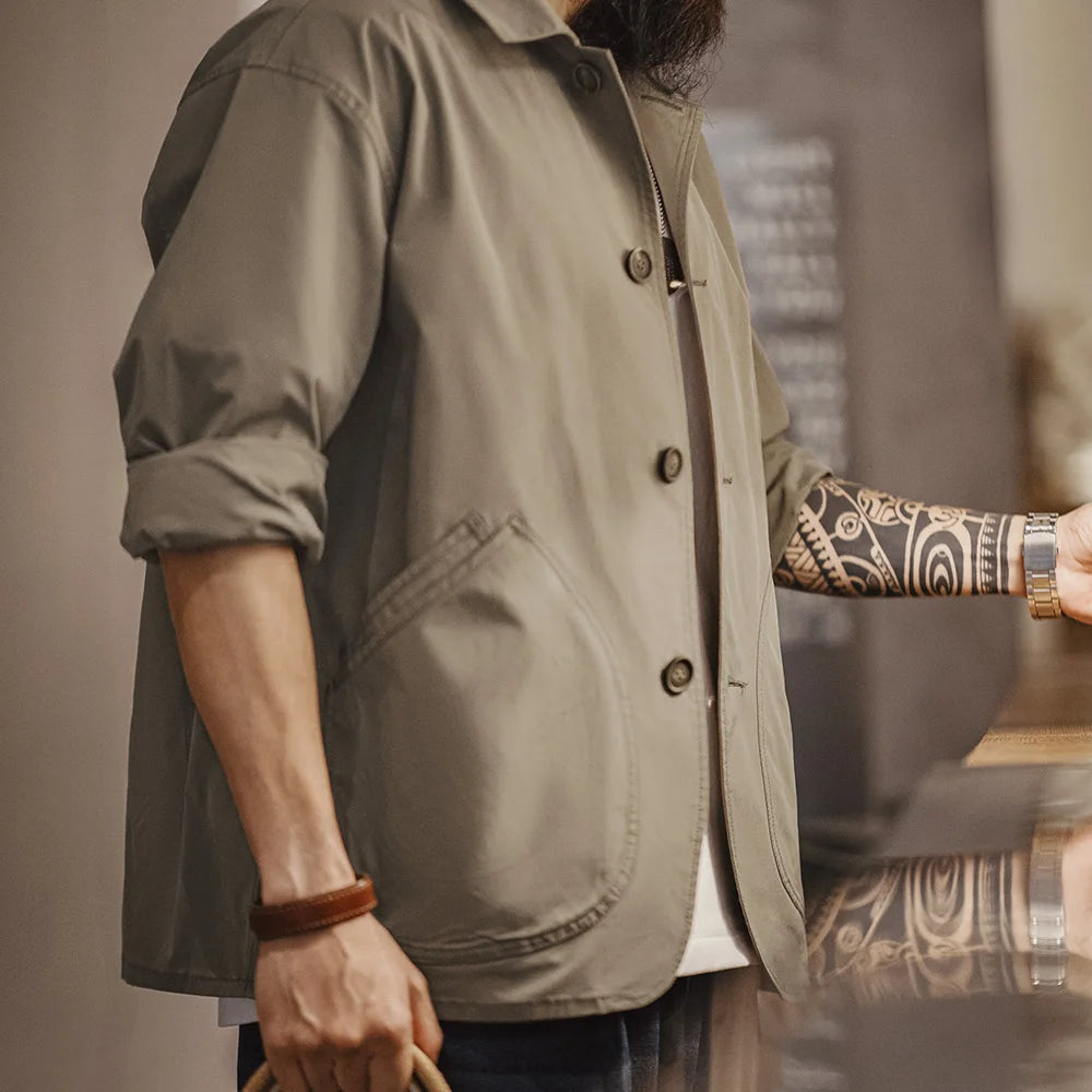 Maden French Vintage Work Jacket Men's Coffee Notch Lapel Casual Single Breasted Coat Slant Pockets Outwear for Spring and Fall