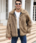 Men Faux Fox Fur Jacket Coat Winter Thick Fluffy Long Sleeve Lapel Warm Shaggy Outerwear Luxury Fur Jacket Bontjas Jackets Mens