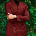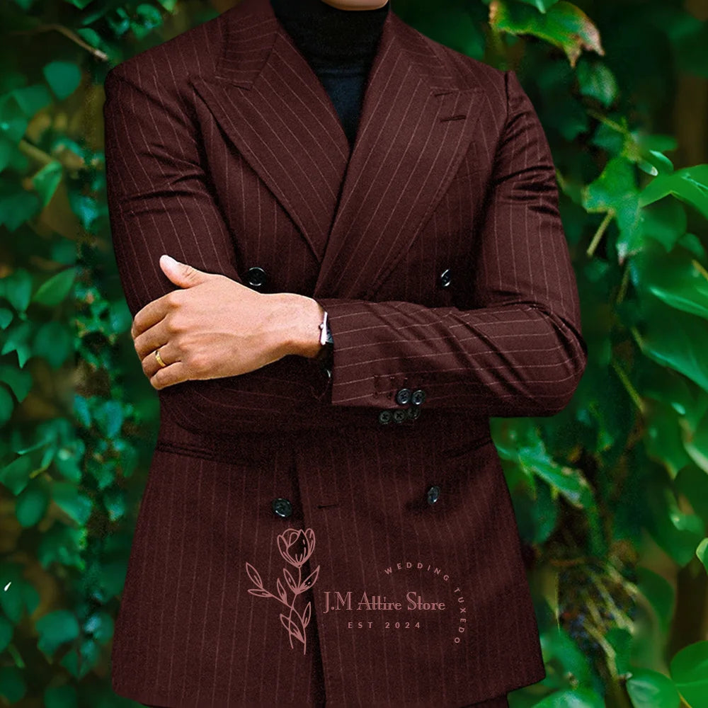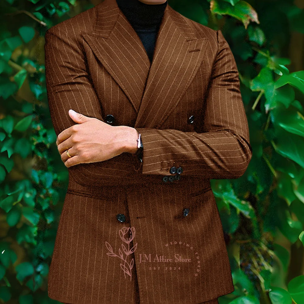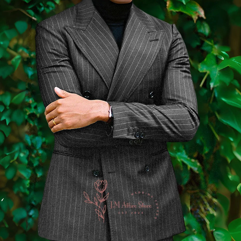 Men formal suit 2-piece set blue striped peak lapel double breasted jacket pants for wedding meeting dinner party custom tuxedo