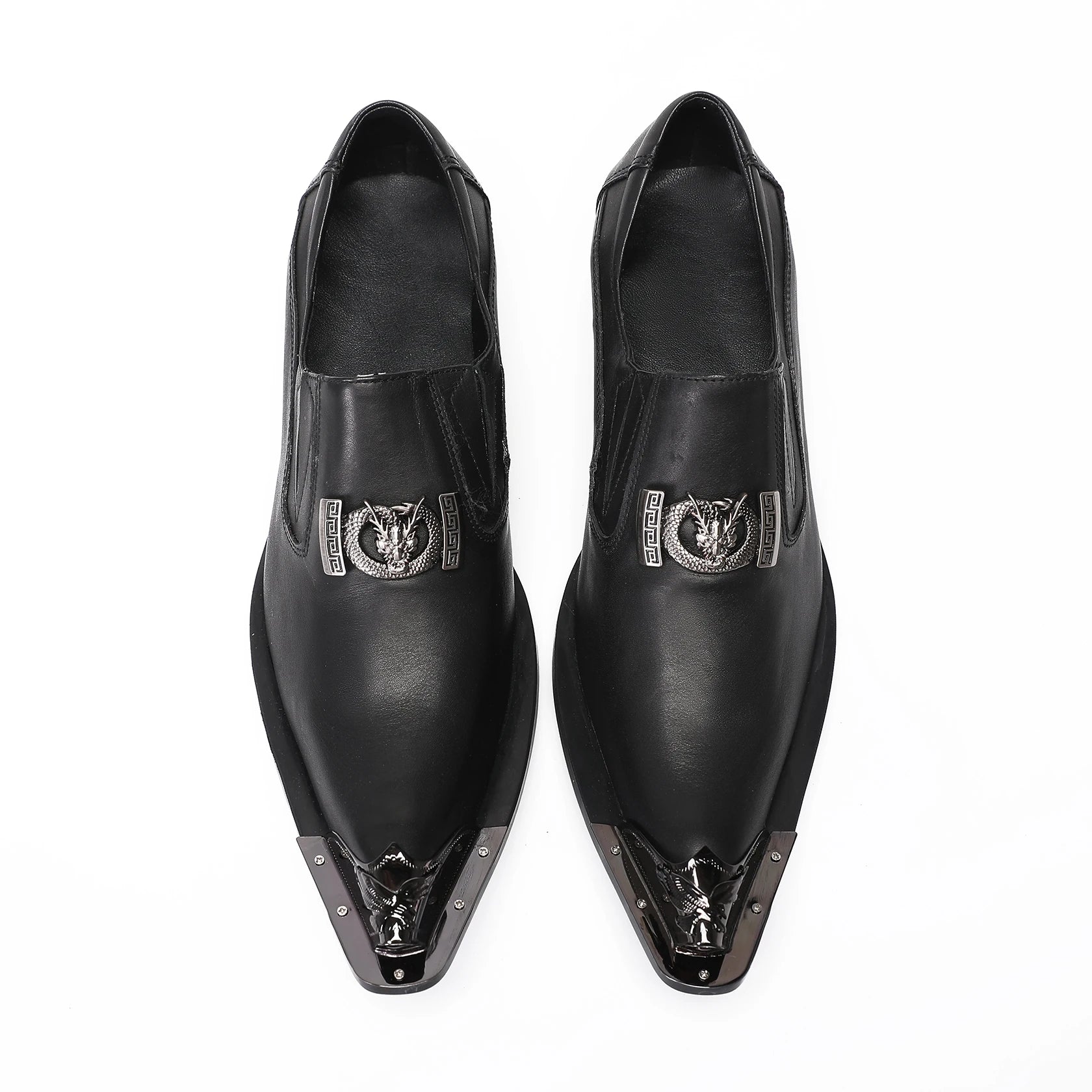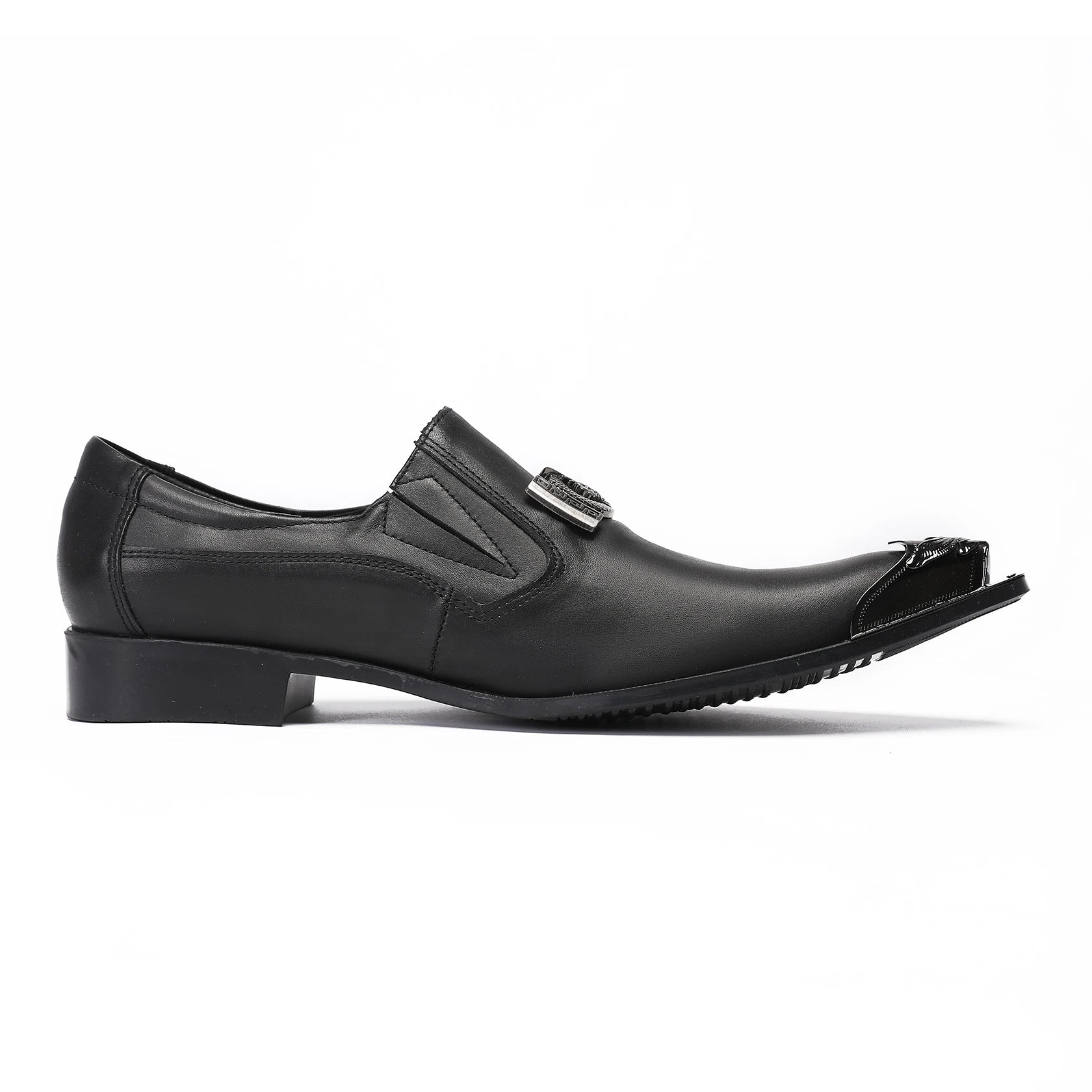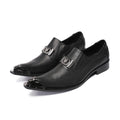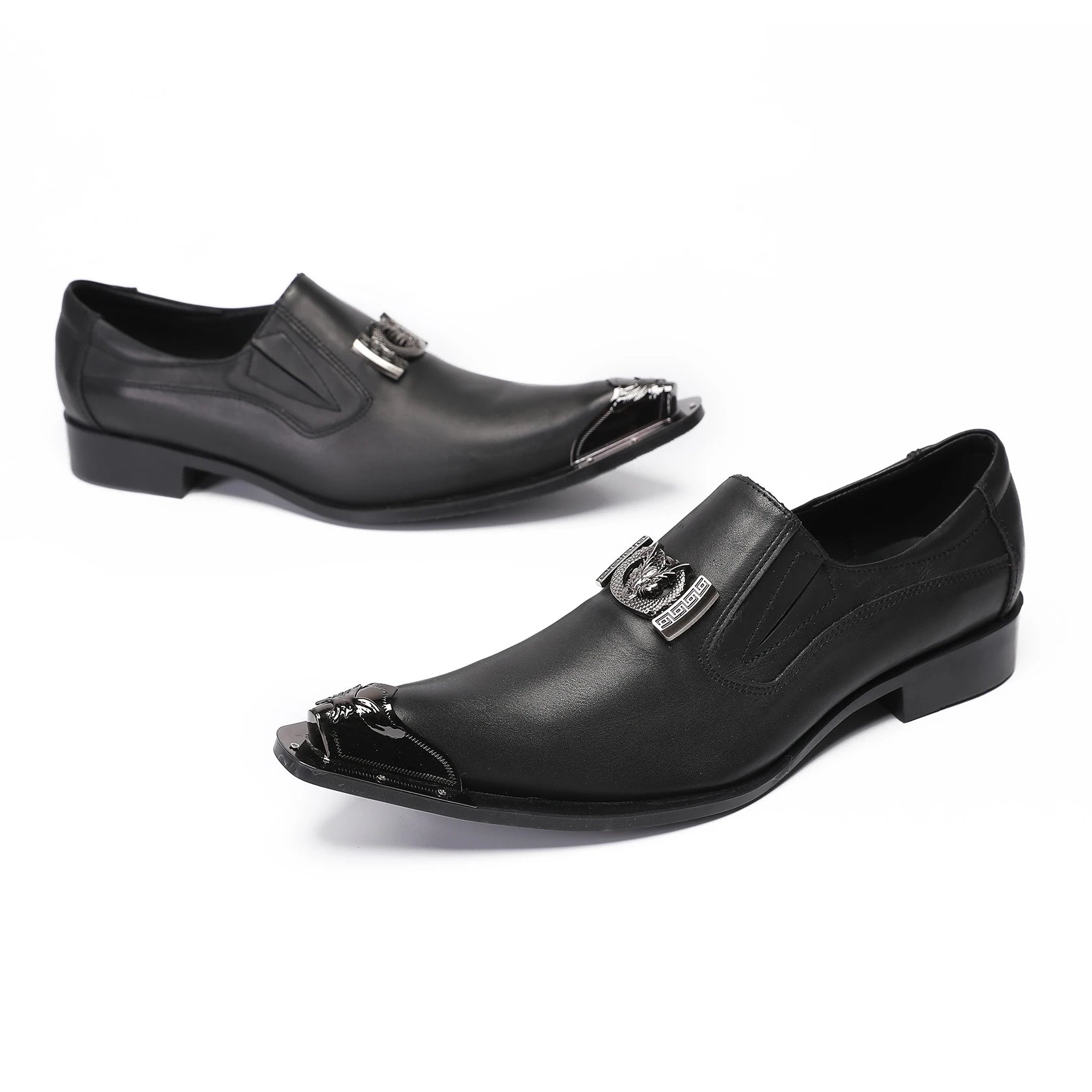 Men's black leather shoes metal toe high-heeled leather iron toe buckle men's set shoes formal party shoes designer shoes
