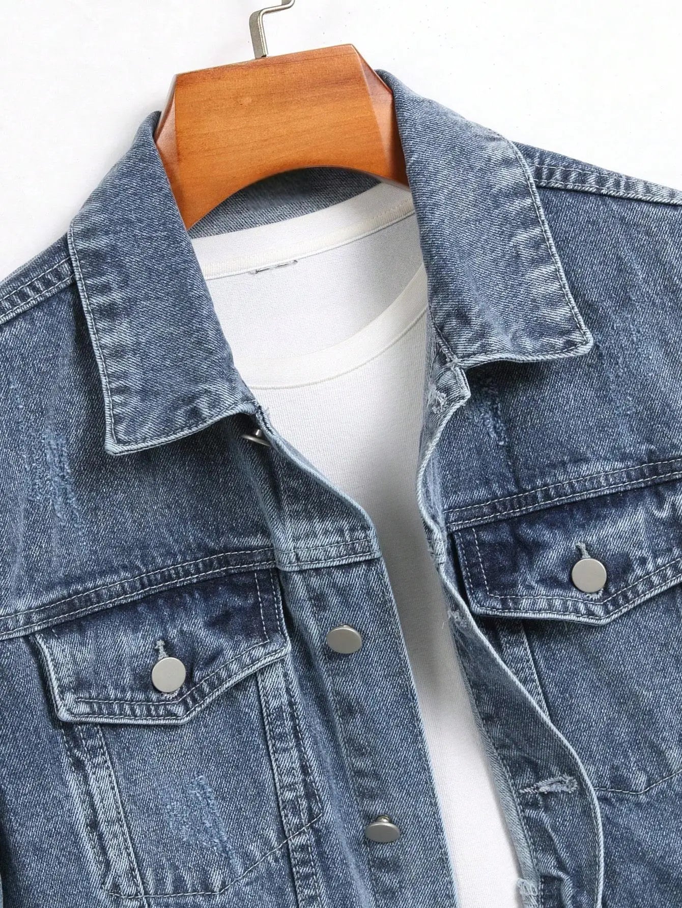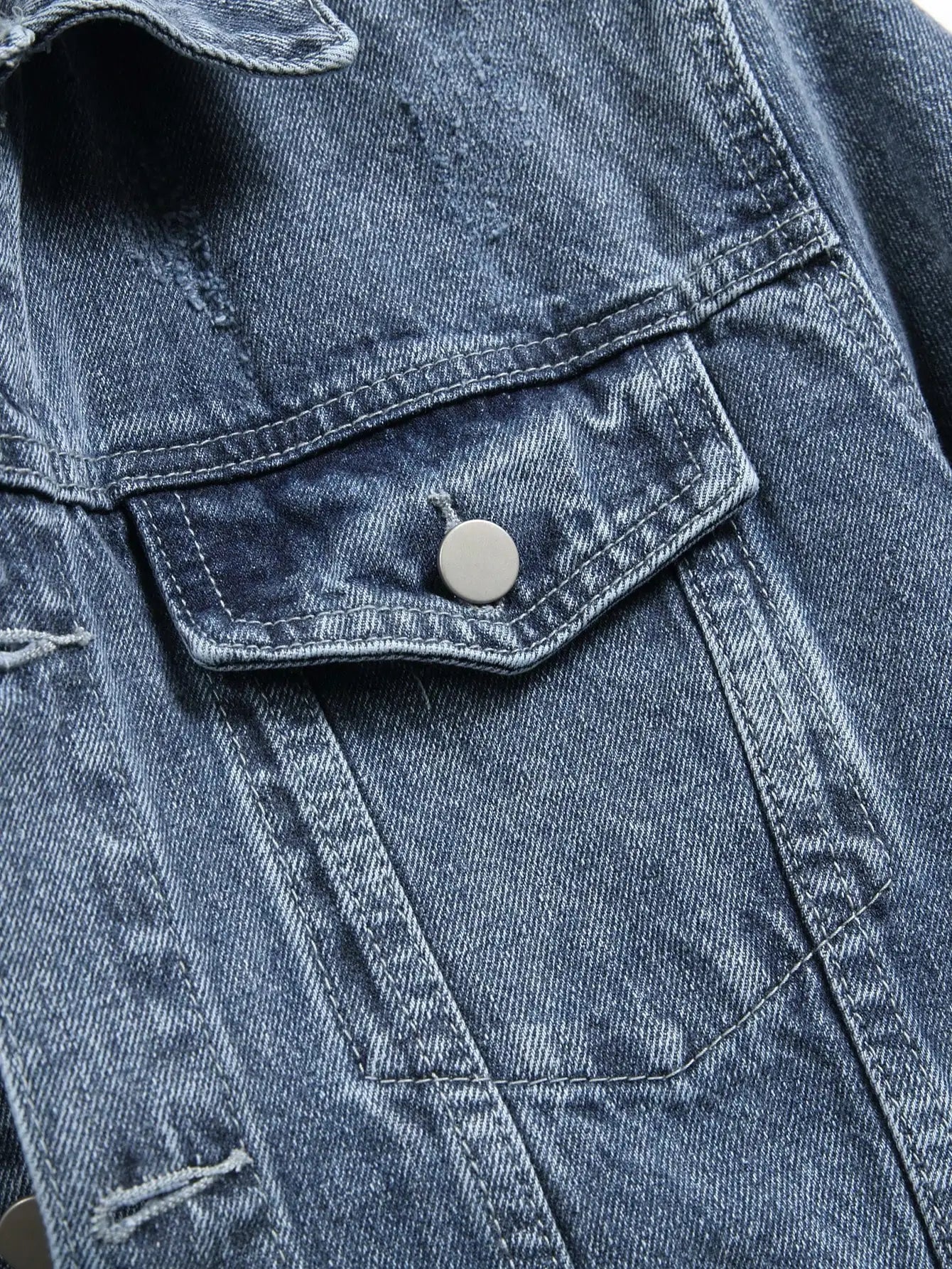 Men's denim jacket for spring and autumn. Blue retro distressed coat. For daily leisure, fashionable and trendy.