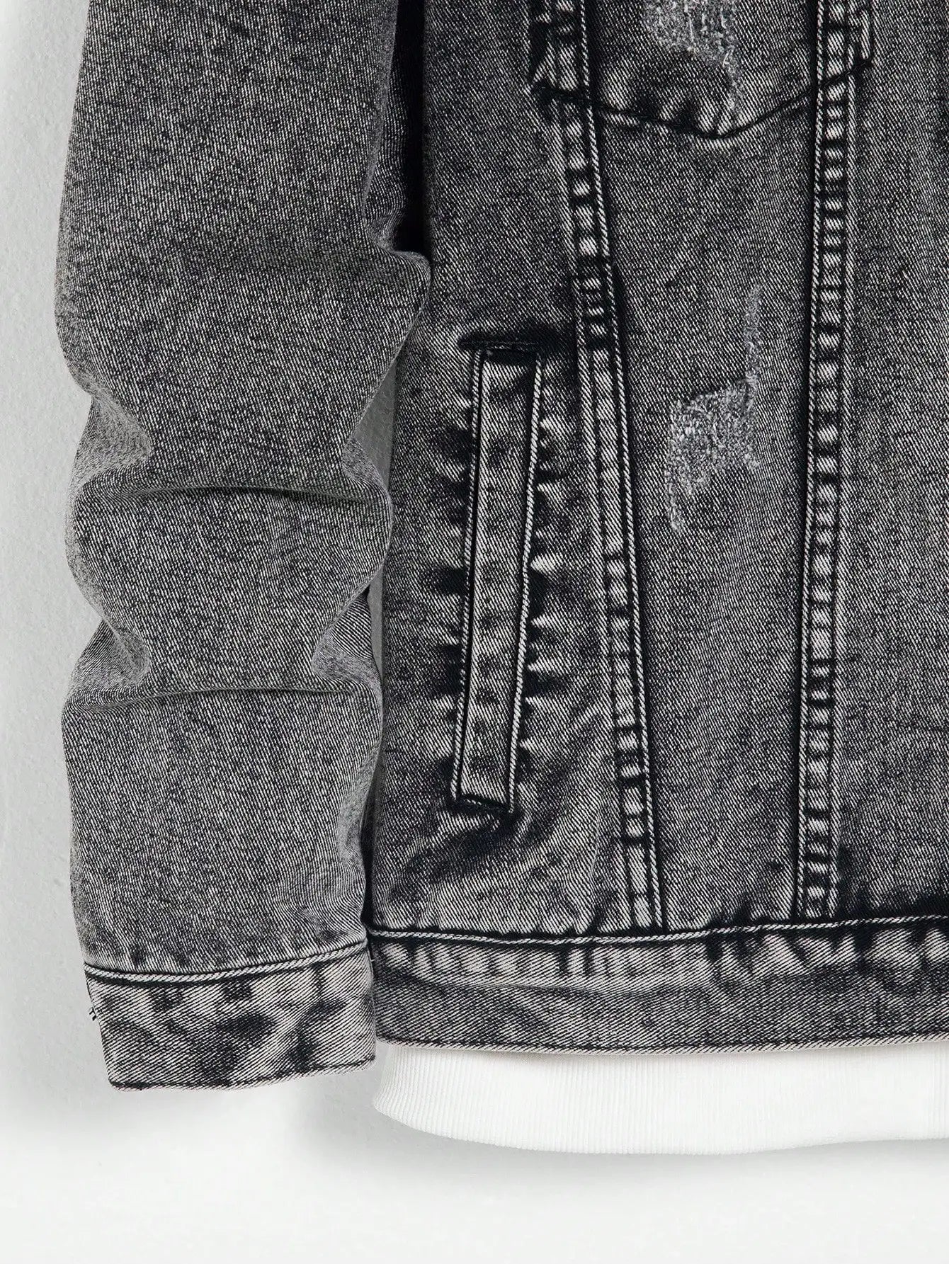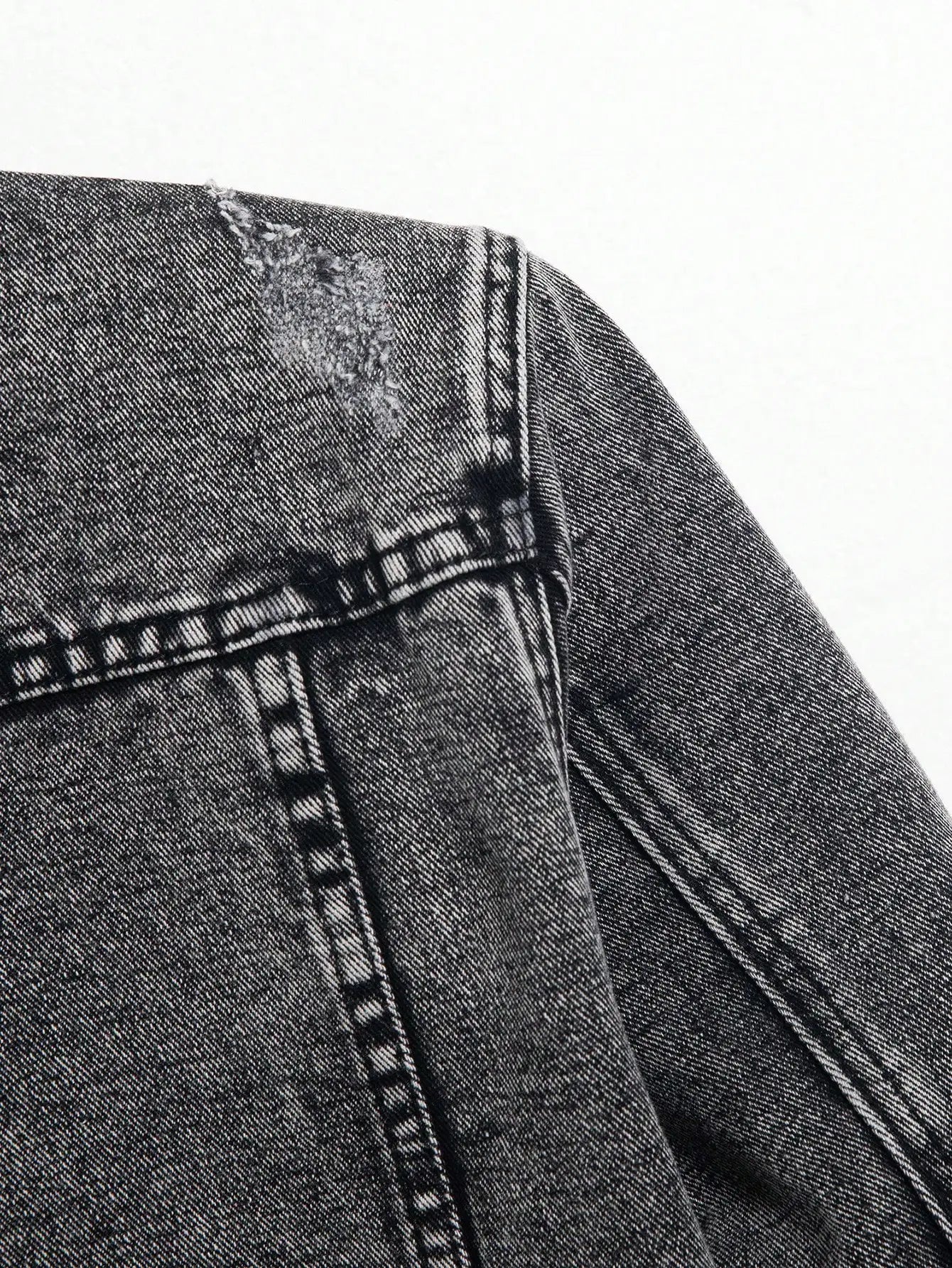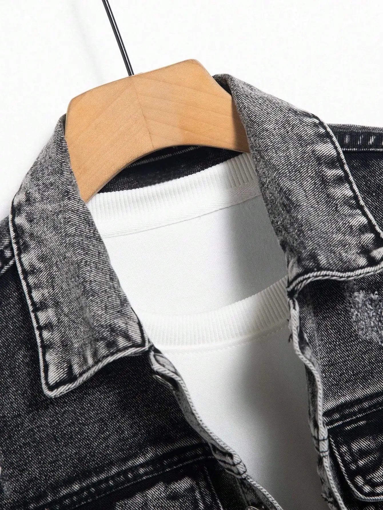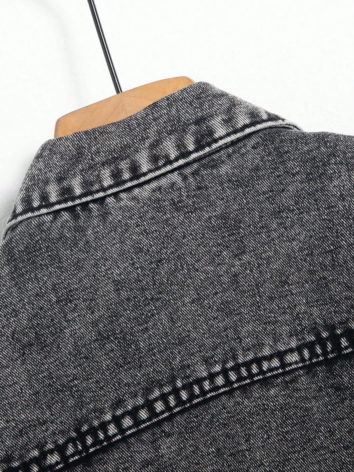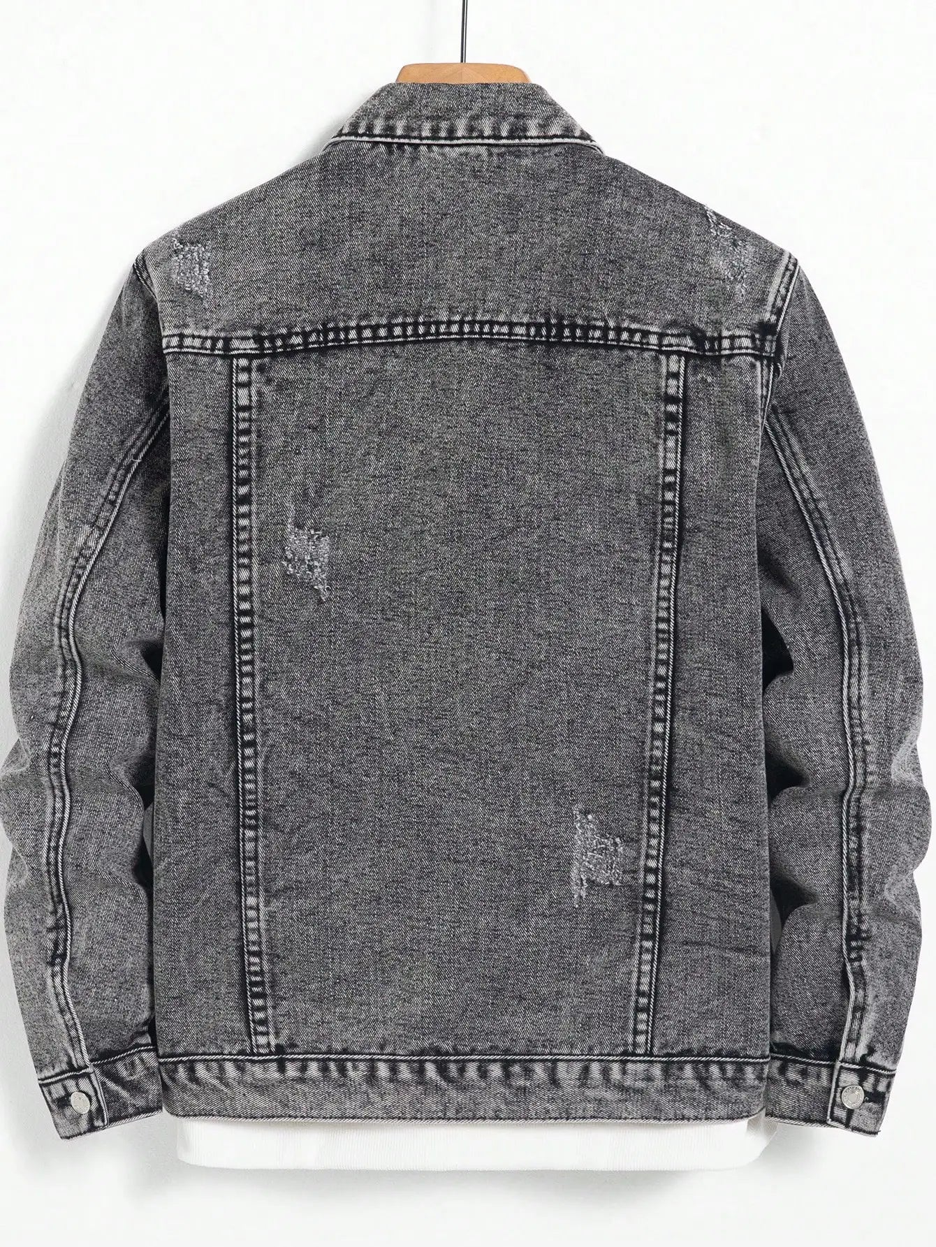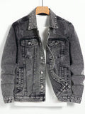 Men's denim jacket for spring and autumn. Dark gray denim coat. Retro, trendy and fashionable. For daily casual wear.