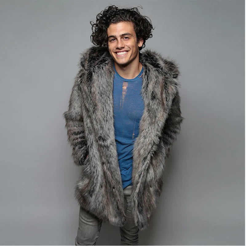 Men's Faux Fur Coat Long Sleeve Hooded Thick Warm Jackets Male Plush Fluffy Cardigan Casual Parka Snow Wear Winter Fur Coat 512