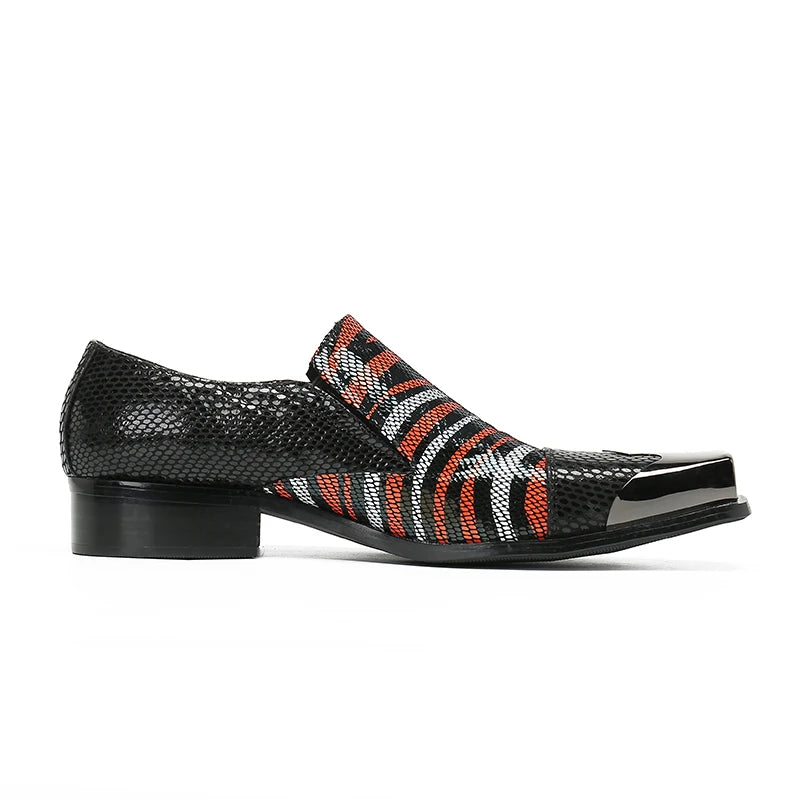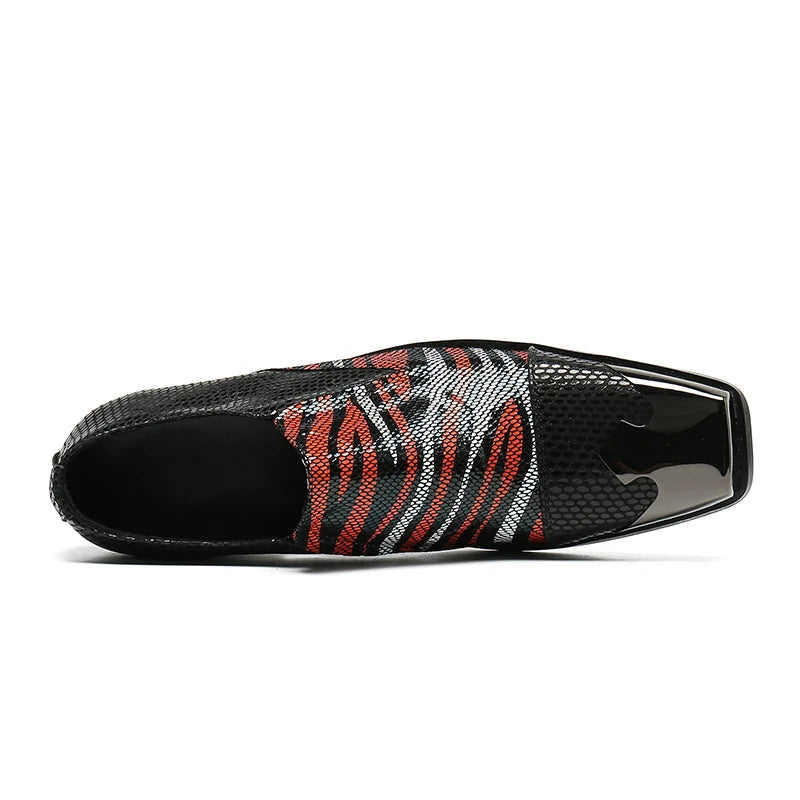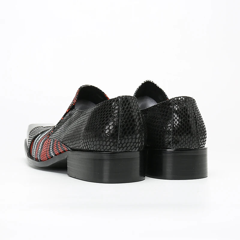 Men's Formal Shoes Square Metal Toe Snake Pattern Fashion Trend New Odor Proof Leather Party Wedding