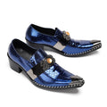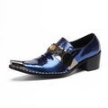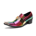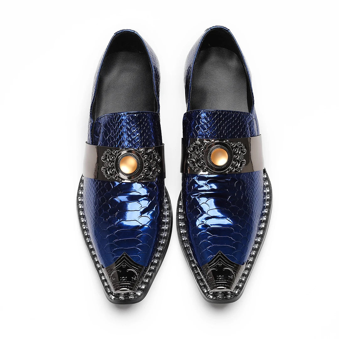 Men's Loafers Snake Skin Pattern New Men's Genuine Leather Shoes Solid Color Pointed Metal Buckle Party Business Shoes