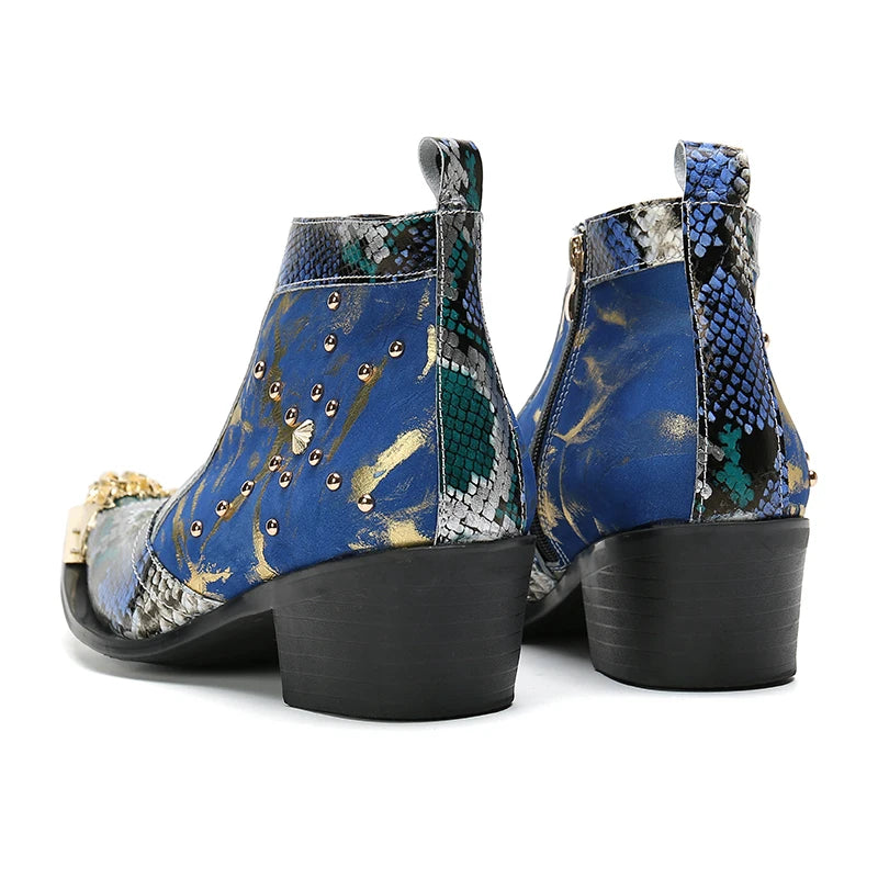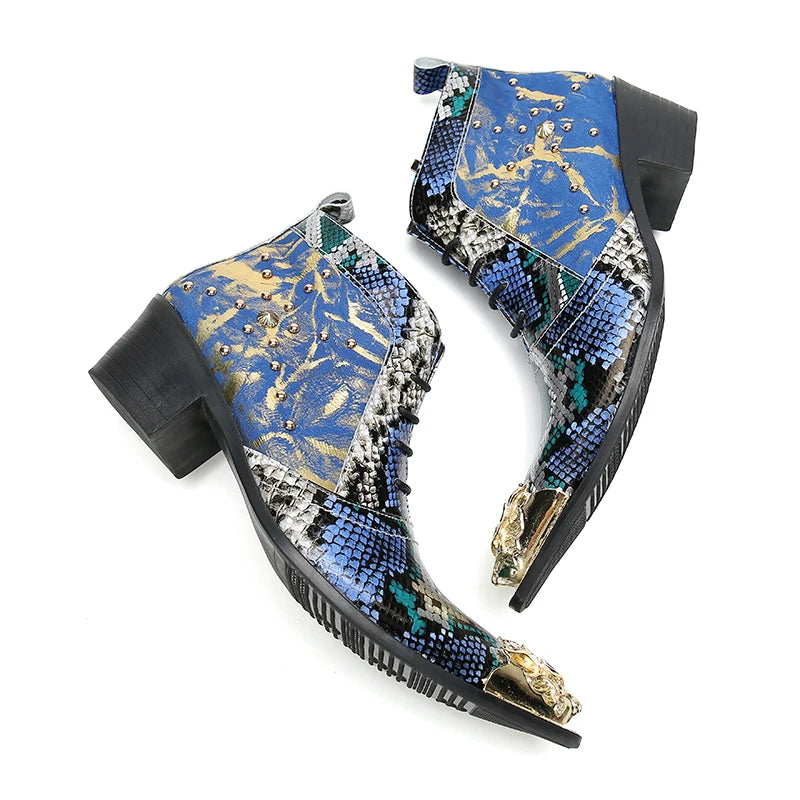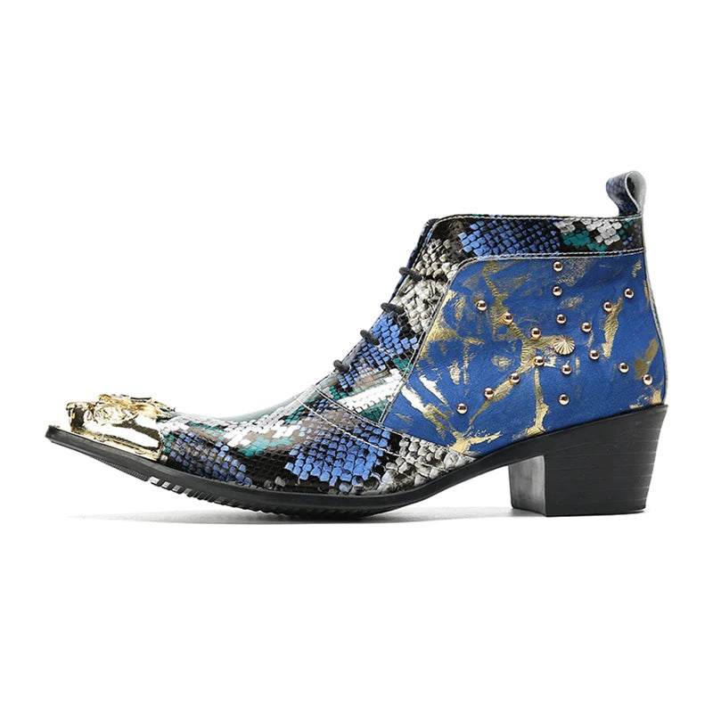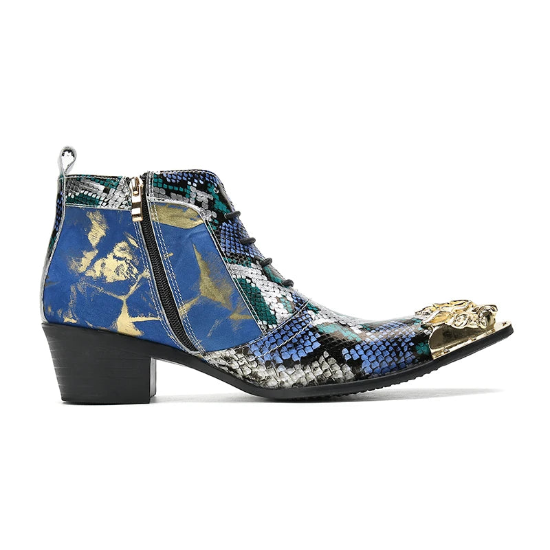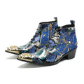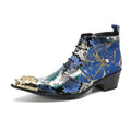 Men's Metal Pointed Chelsea Boots Ankle Boots Lace Up Zipper Leather High Heels Party Dance Dress Shoes