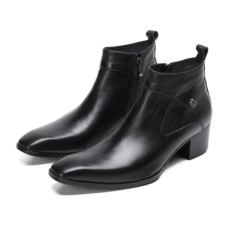 Men's Middle School Cowherd Leather Shoes Retro Wedding Ball Banquet Versatile Dress Ankle Short Boots Men's Zipper