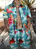 Men's New Hawaiian Short-Sleeved Shirt Shorts Set Summer Daily Travel Shirt Beach Casual Drawstring Shorts Jungle Print Set