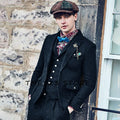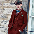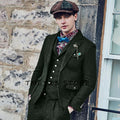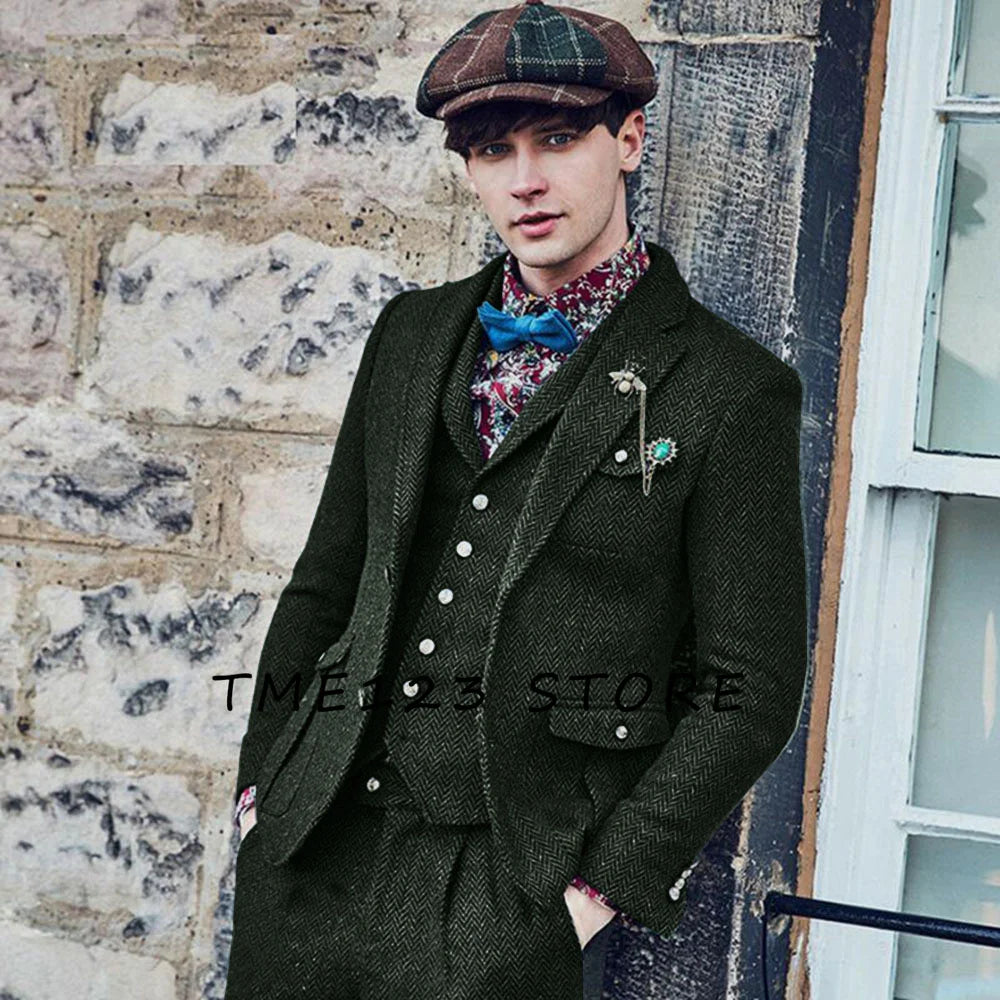 Men's Retro Herringbone Pattern Suit Wool 3-Piece Suit Two Buttons British Casual Suit Tuxedo And Blazer