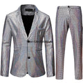 Mens Stage Prom Suits Shiny Rainbow Plaid Sequin Jacket Pants Men Dance Festival Christmas Halloween Party Costume Homme