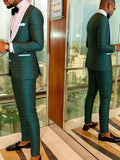 Men's three-piece green jacquard slim-fitting suit set, including paisley pattern suit jacket, vest, and pants, suitable for bal