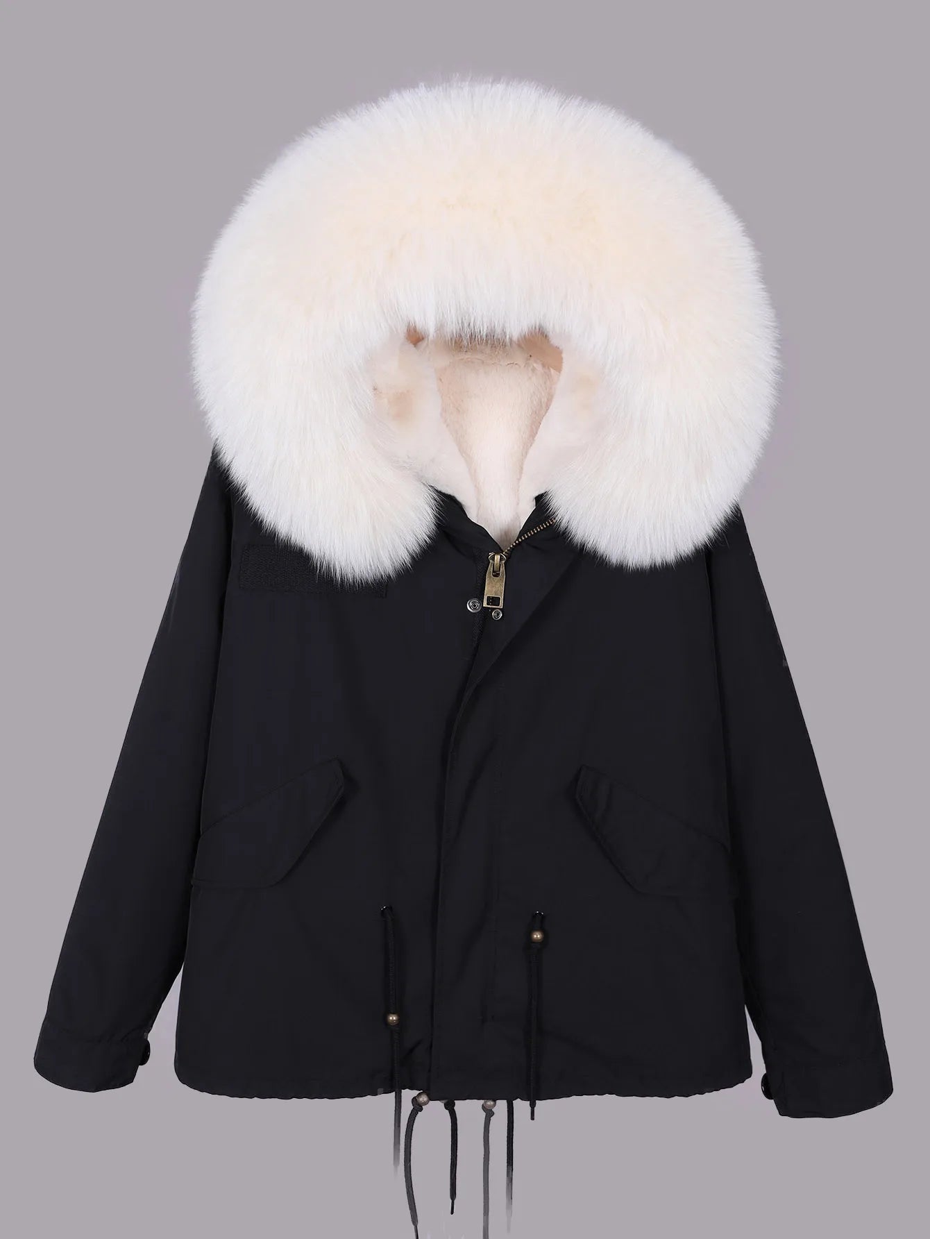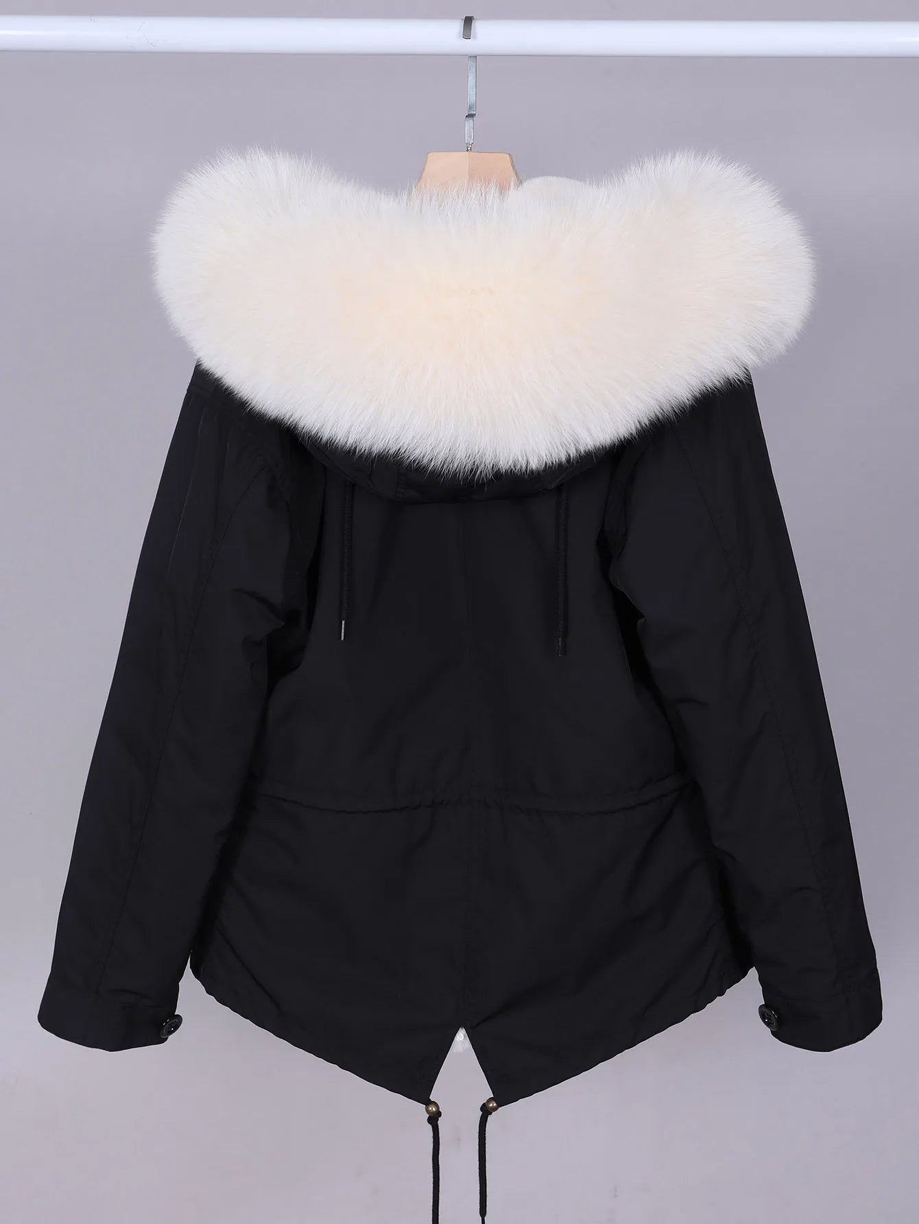 Natural Real Fur Collar Winter Snow Woman Jacket Detachable Inner Lining Warm Hooded Parka Coat for Cold Weather