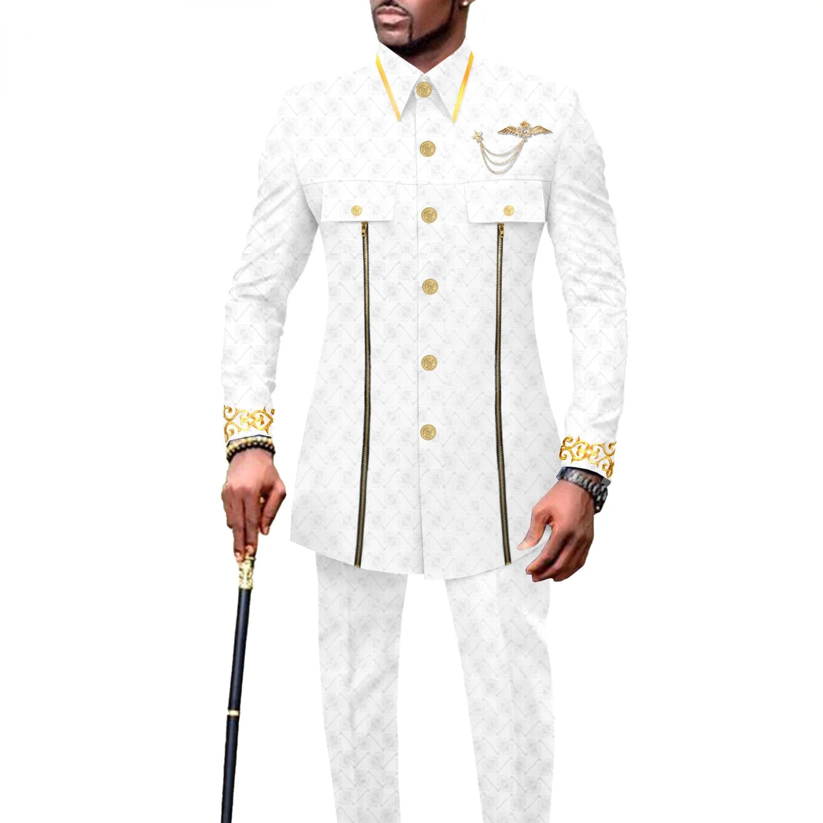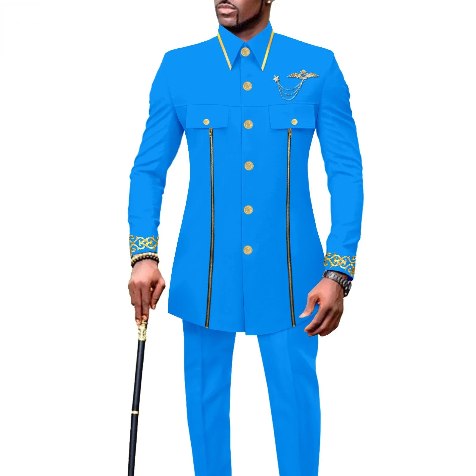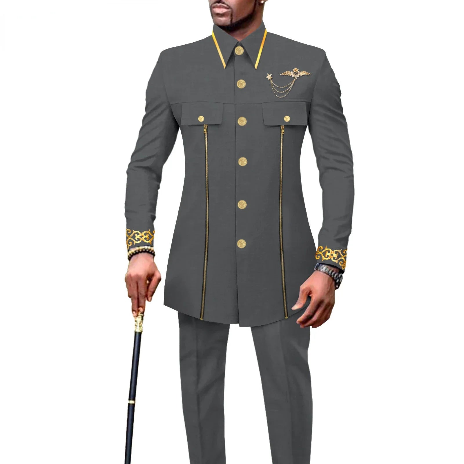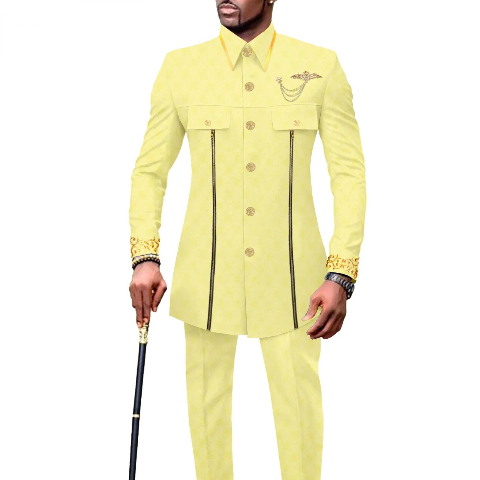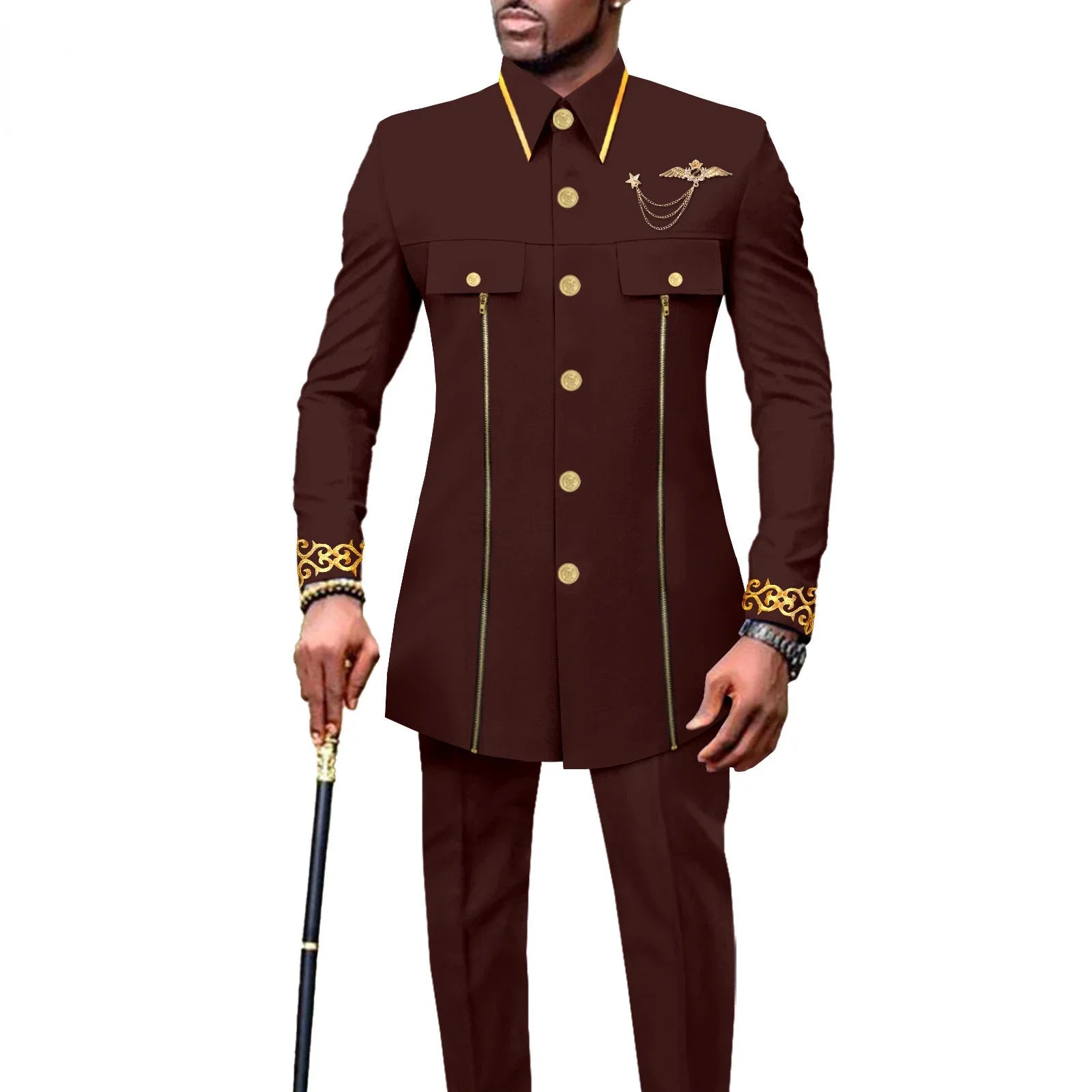 new fashion casual African ethnic solid color cotton men's casual embroidered jacket + pants 2 sets mens clothes funny suit