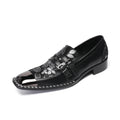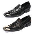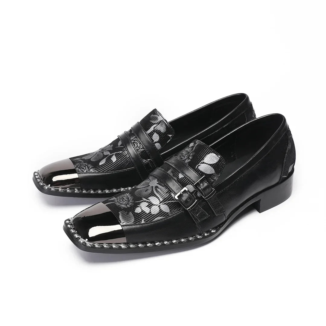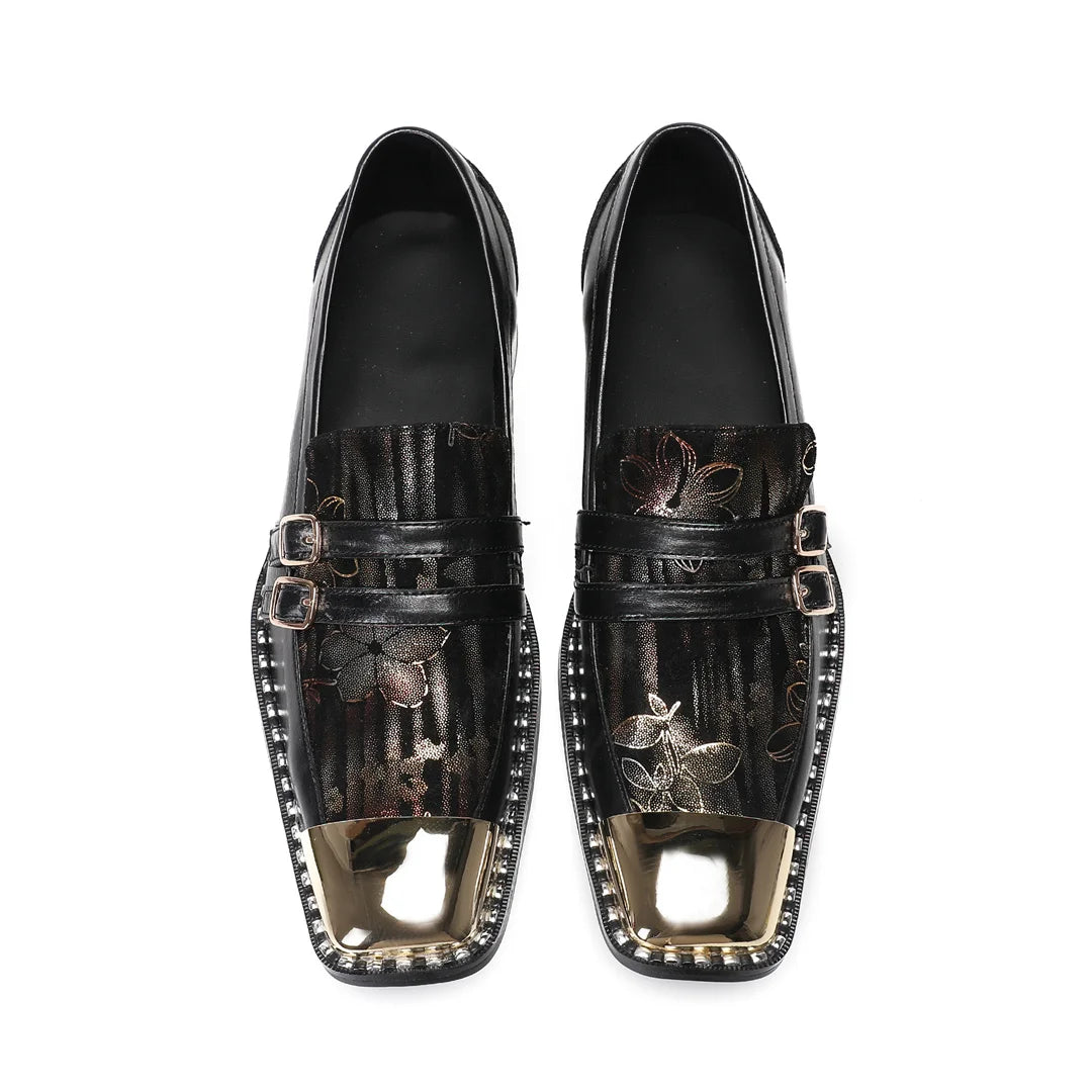 New printed men's square toe formal leather shoes black leather party formal shoes gold buckle shoes, formal shoes for men
