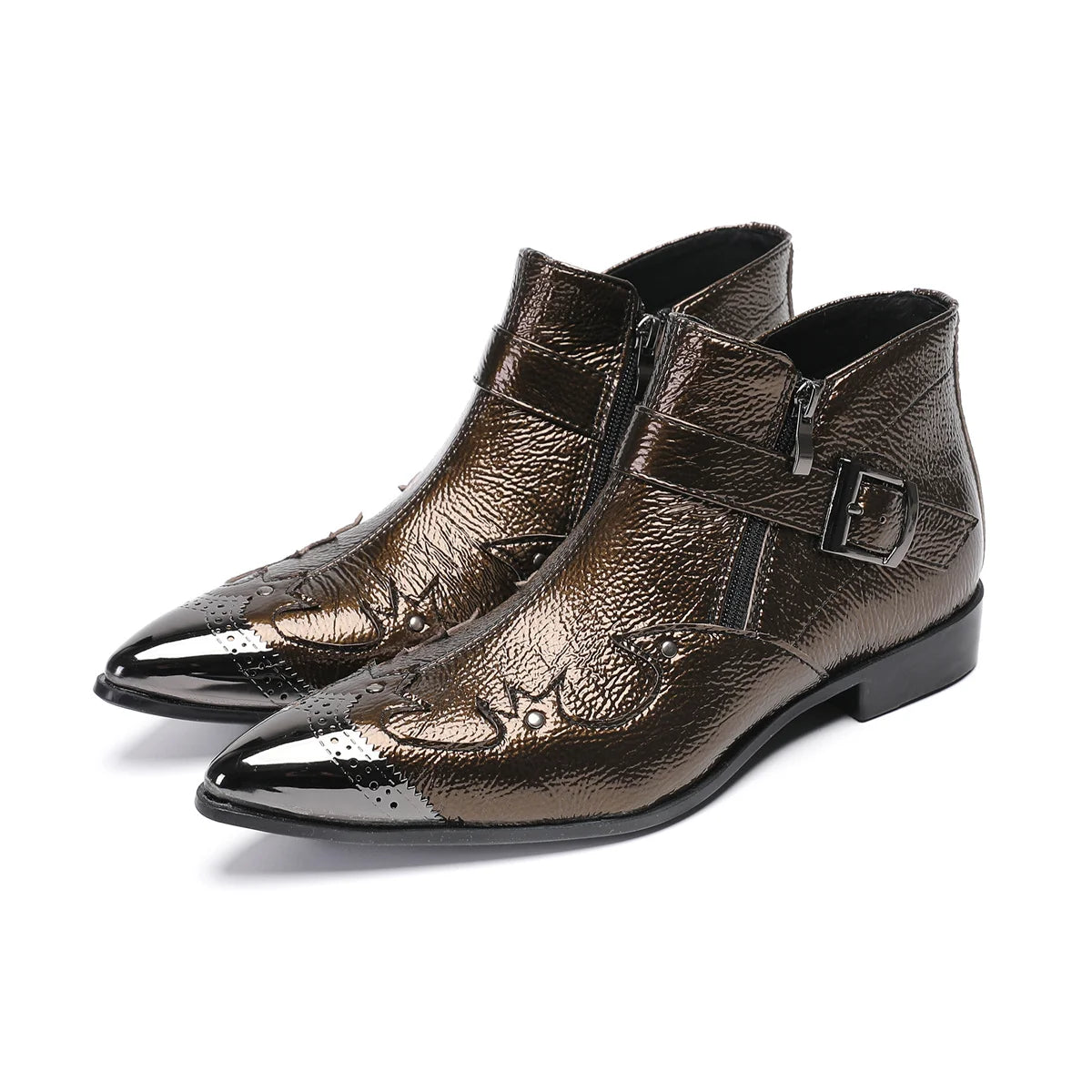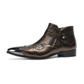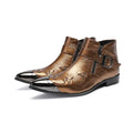 New Solid Color Metal Pointed Men's Leather Shoes Over Ankle Chelsea Men's Zipper Casual Handmade Leather Dress Party Boots