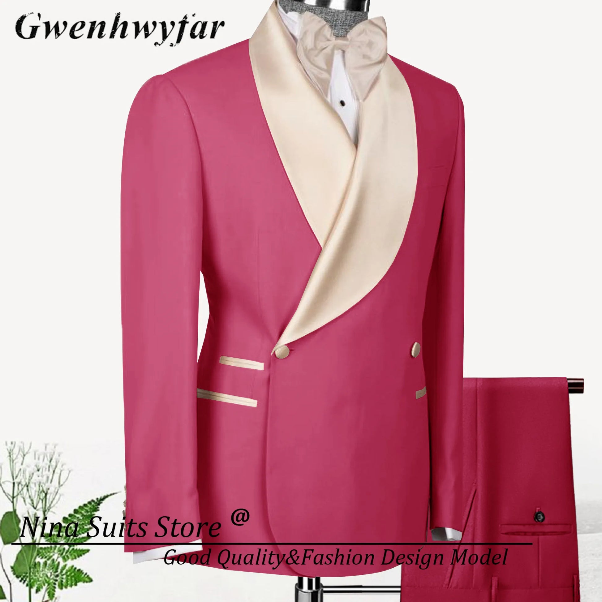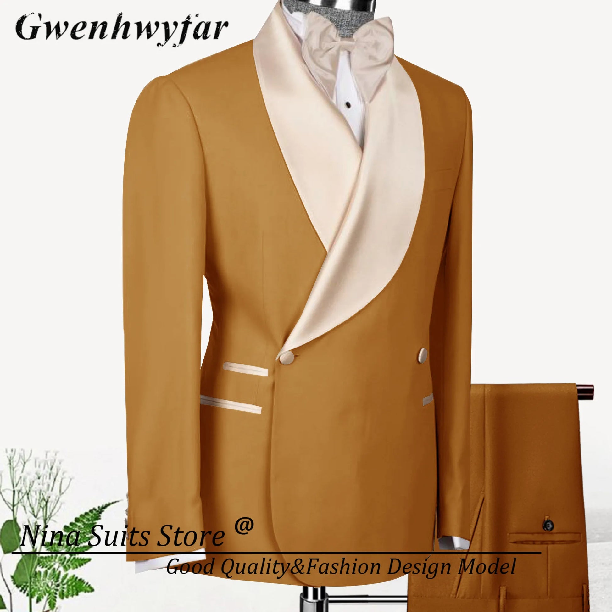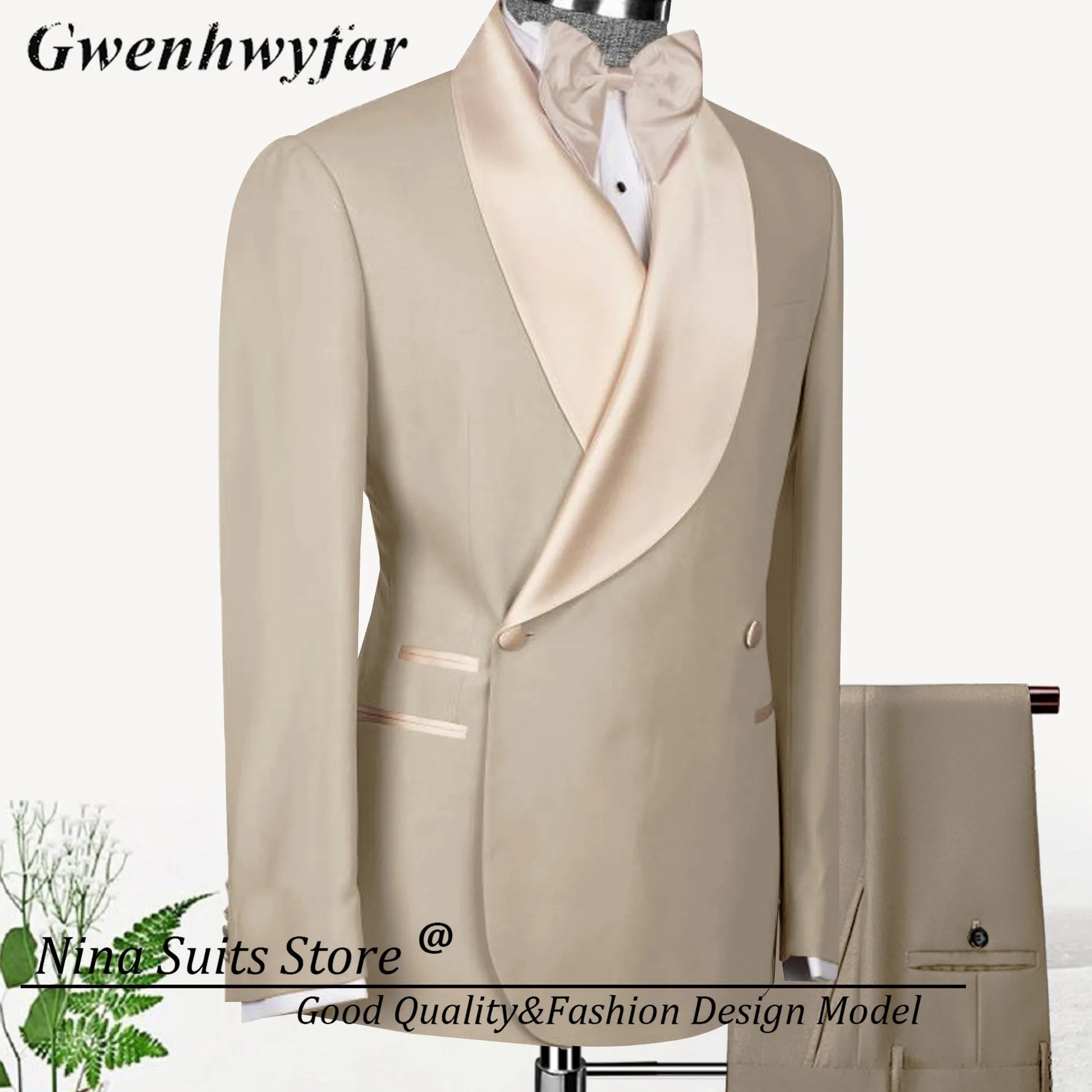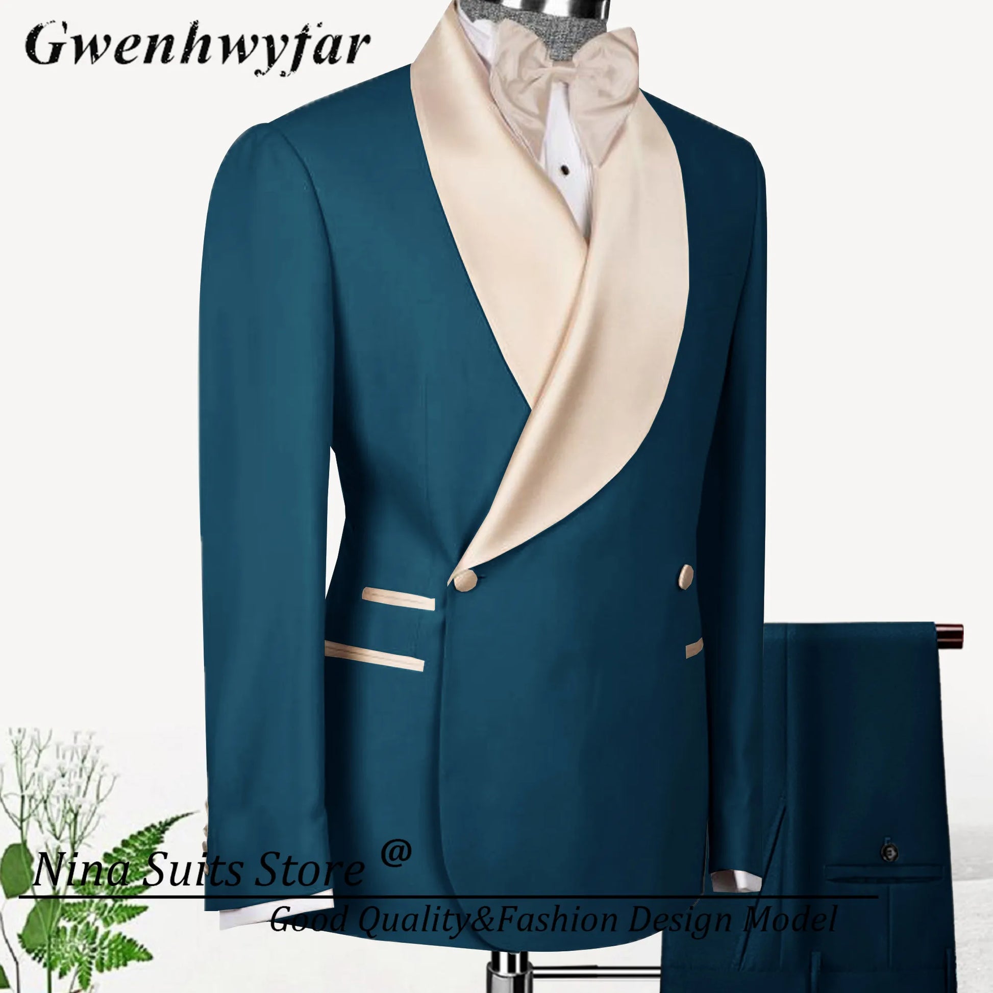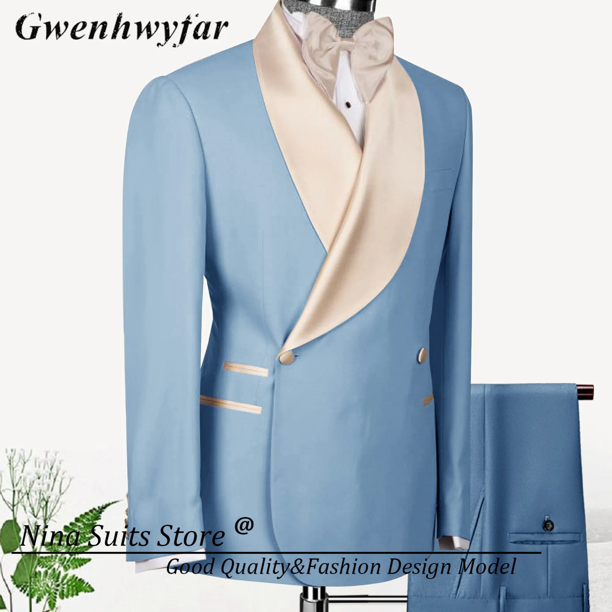 Nina Store Double Breasted Suits for Men Navy Blue Blazer Pants 2024 Formal Champagne Lapel Party Wear Costume Homme for Wedding