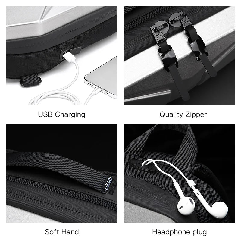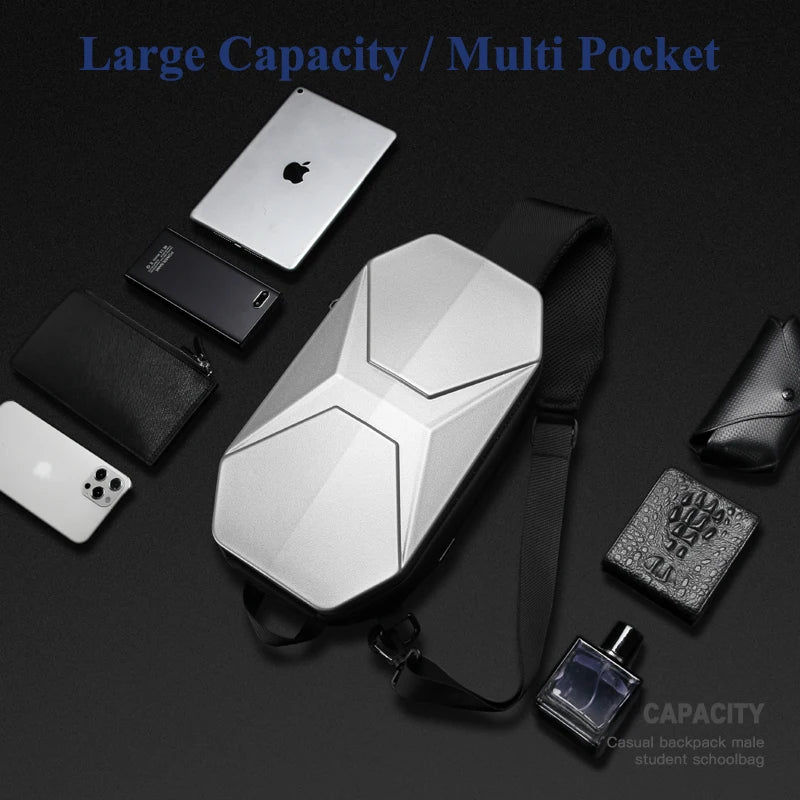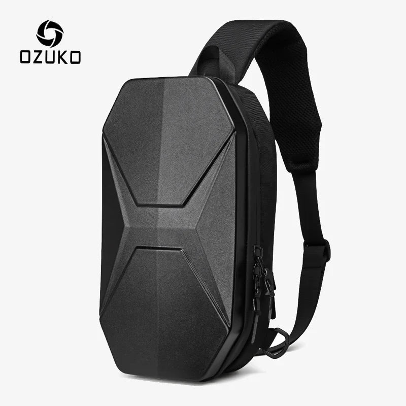 OZUKO Men Shoulder Bags Fashion Hard Shell Chest Bag Male Waterproof Short Trip Messenger Bag USB Charging Crossbody Bag Teenage