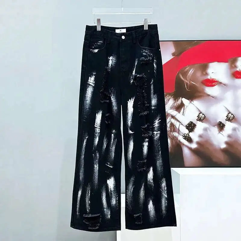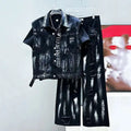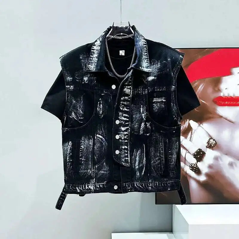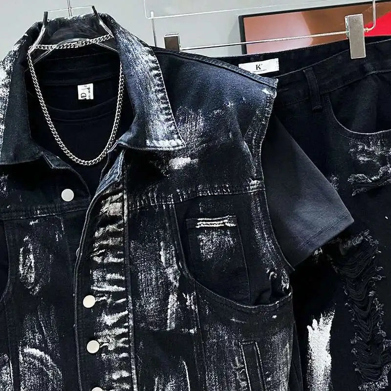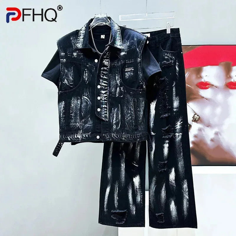 PFHQ Trendy Men Sets Sleeveless Graffiti Decoration Vest Jacket Straight-leg Trousers Handsome Male Two-piece 2025 New 21E5964