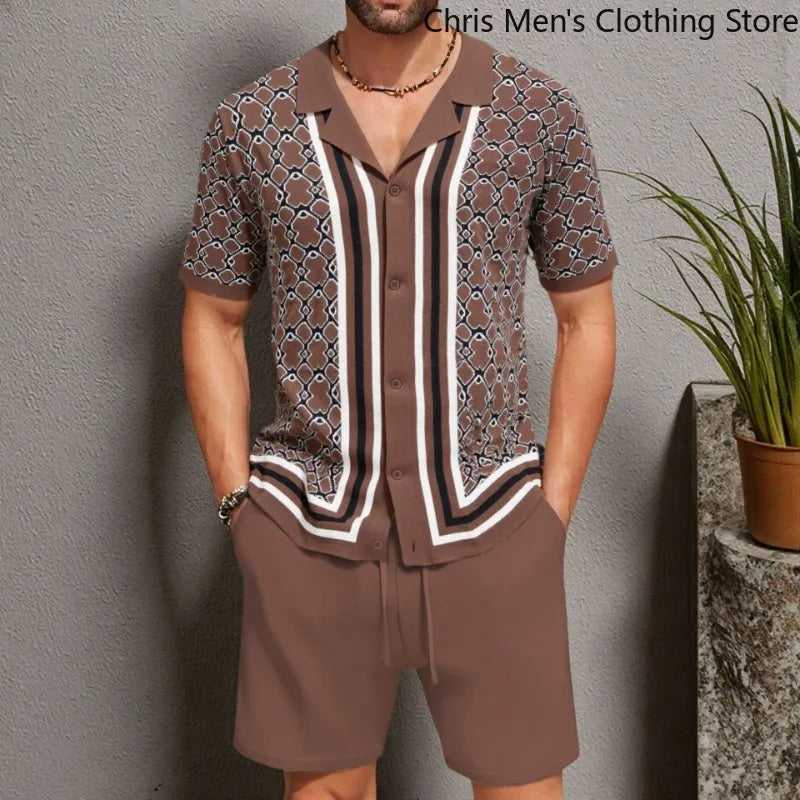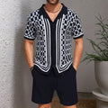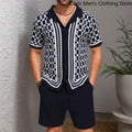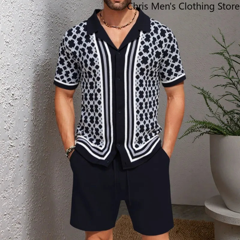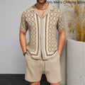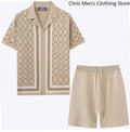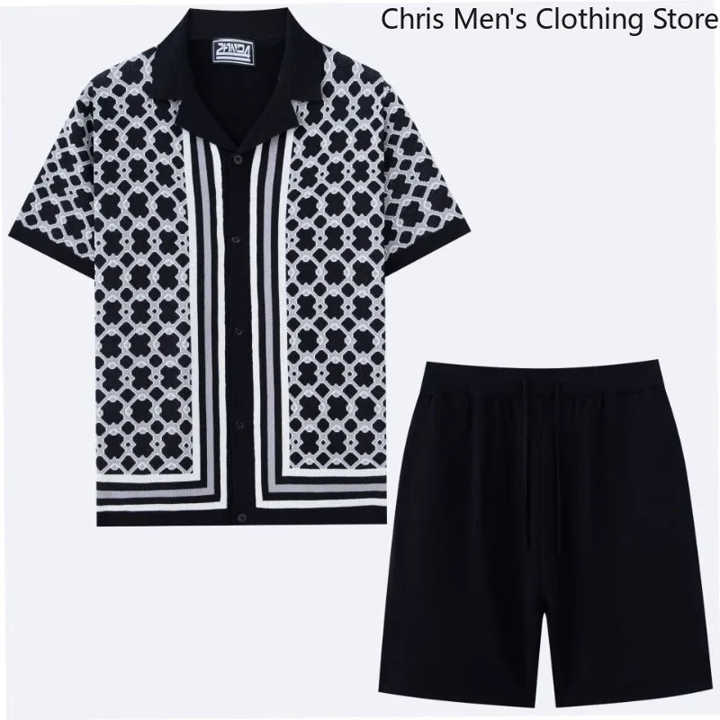 【 Quick Delivery】Summer Men's High-quality Jacquard Knitted Suit, Business Casual Luxury Short-sleeved Shirt and Shorts Set