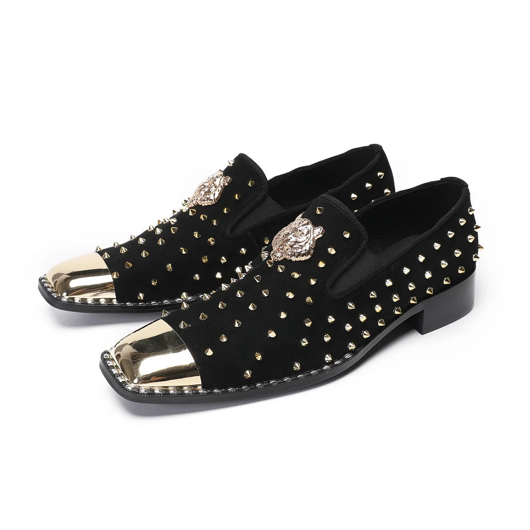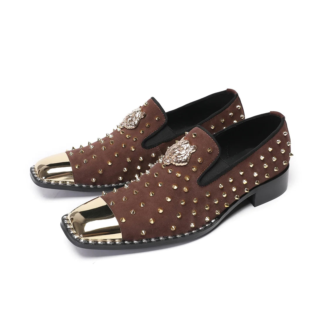 Rivet metal head decorative slip on men's shoes are breathable durable fashionable casual party luxurious formal shoes