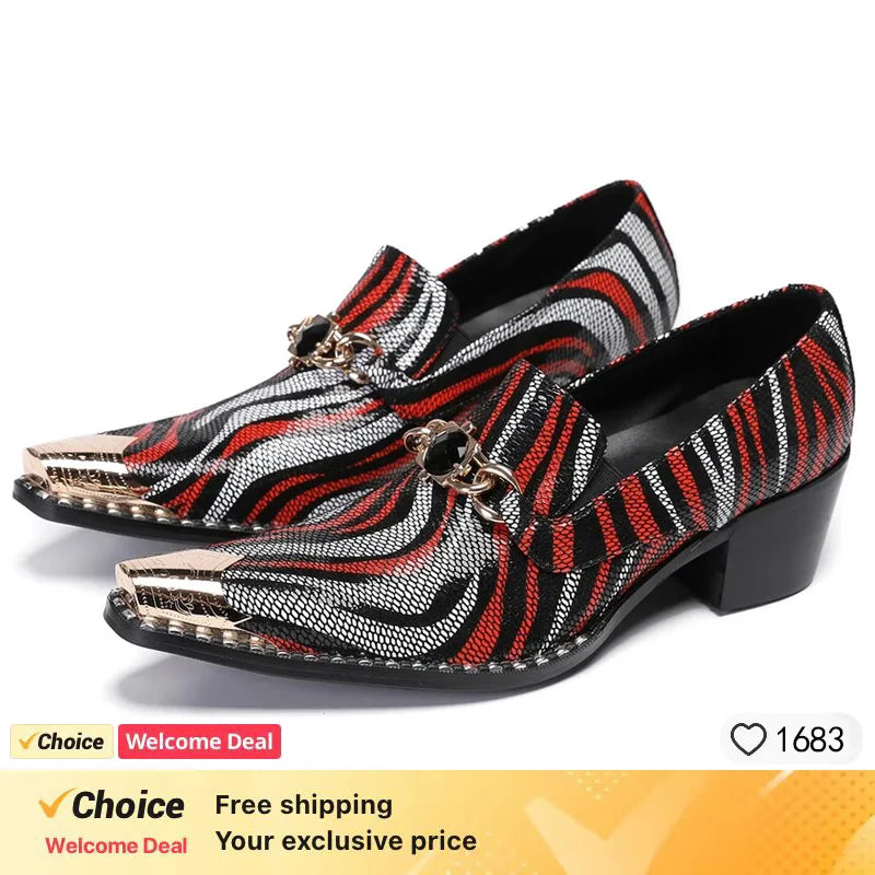 Snake pattern Men High-heeled Party Prom Dress Shoes Multicolor Stripe Business Formal Shoes Big Size Slip on Men Shoes