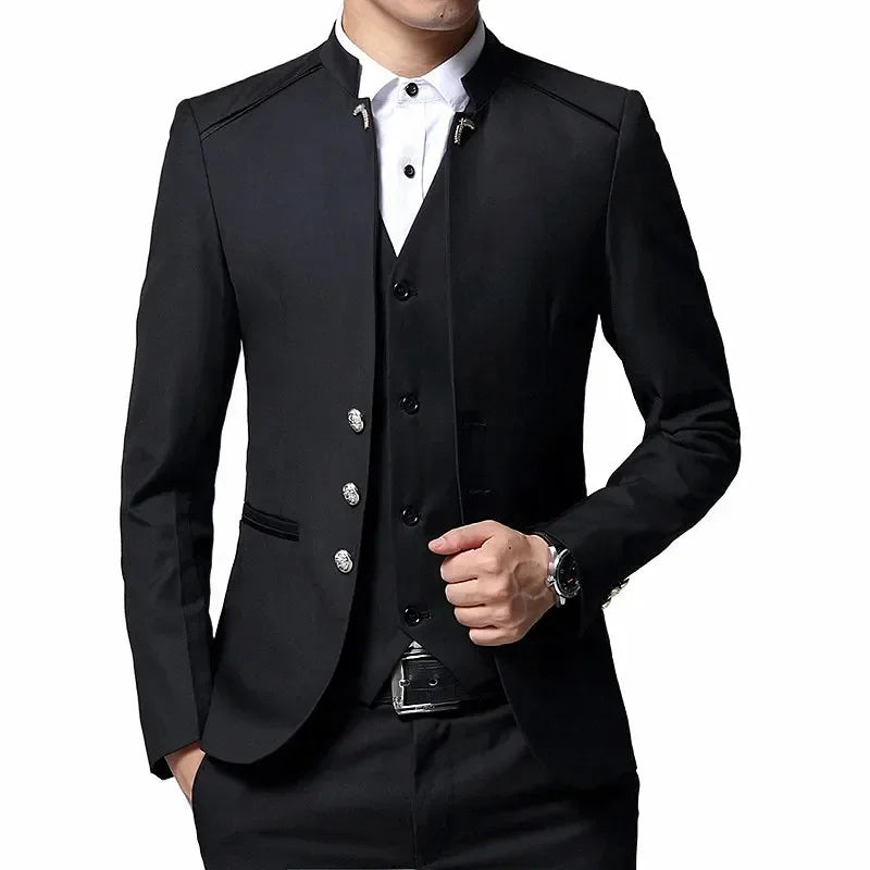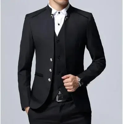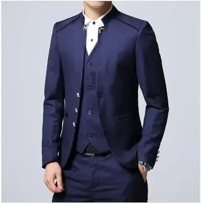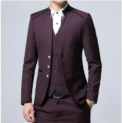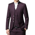 Solid Color Men's Suit 3 Piece Suit, Wedding Party Dress Jacket and Vest with Pants, Asian Size M-5XL, Navy Burgundy Available