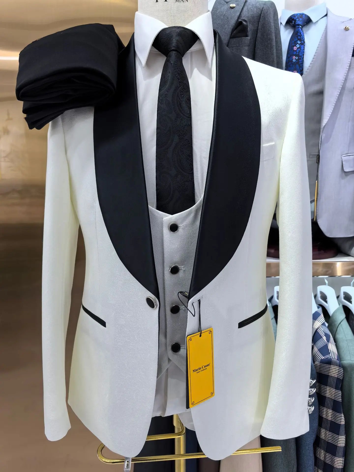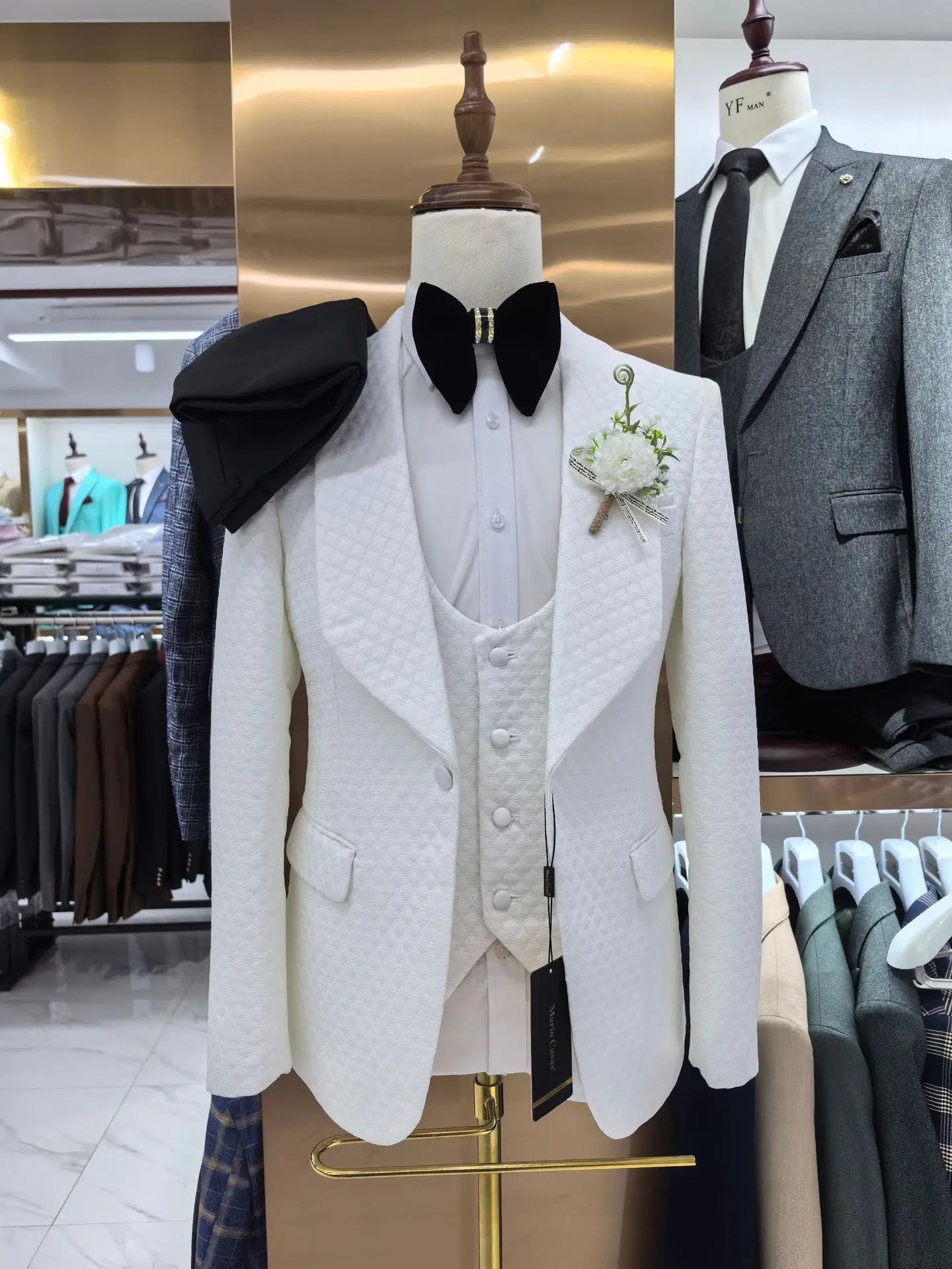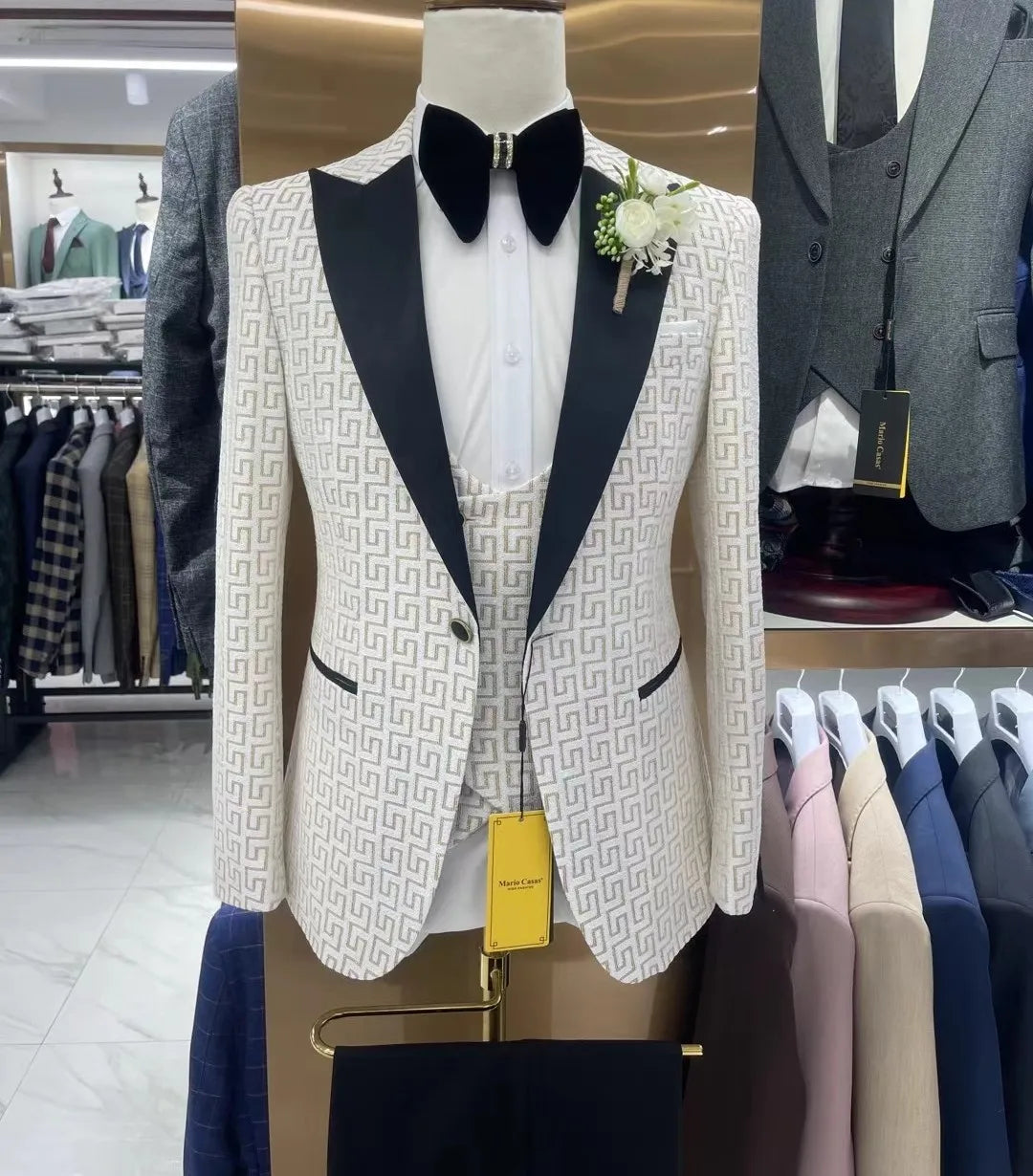 Spring 2025 Cross-border Plus-size Men's Jacquard Suit Wedding Dress Groom Suit Mens Suits 3 Piece Men Clothing Mens Suits