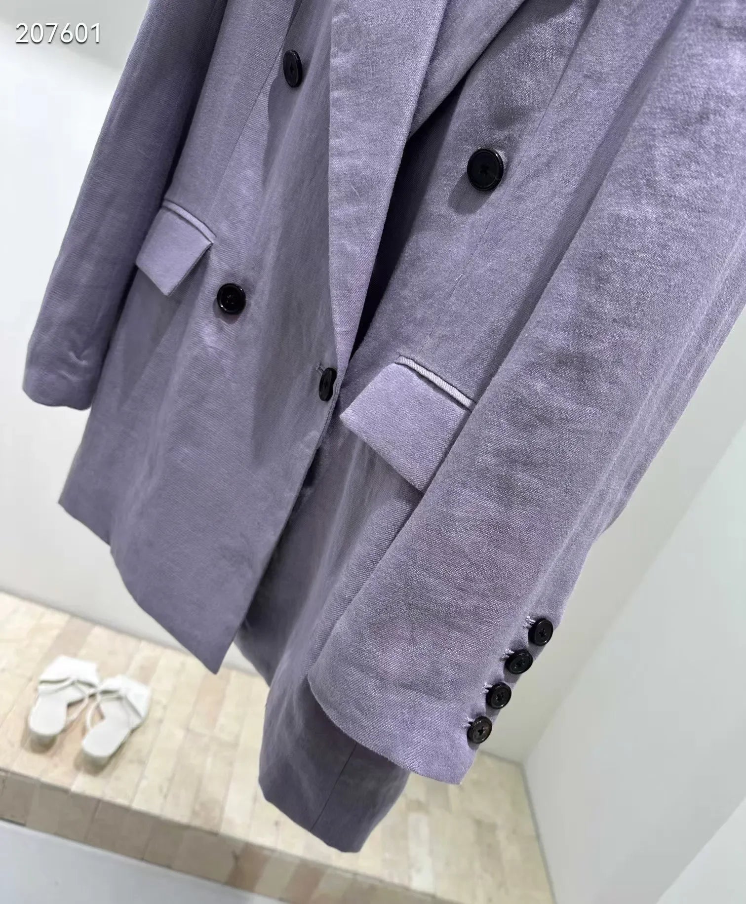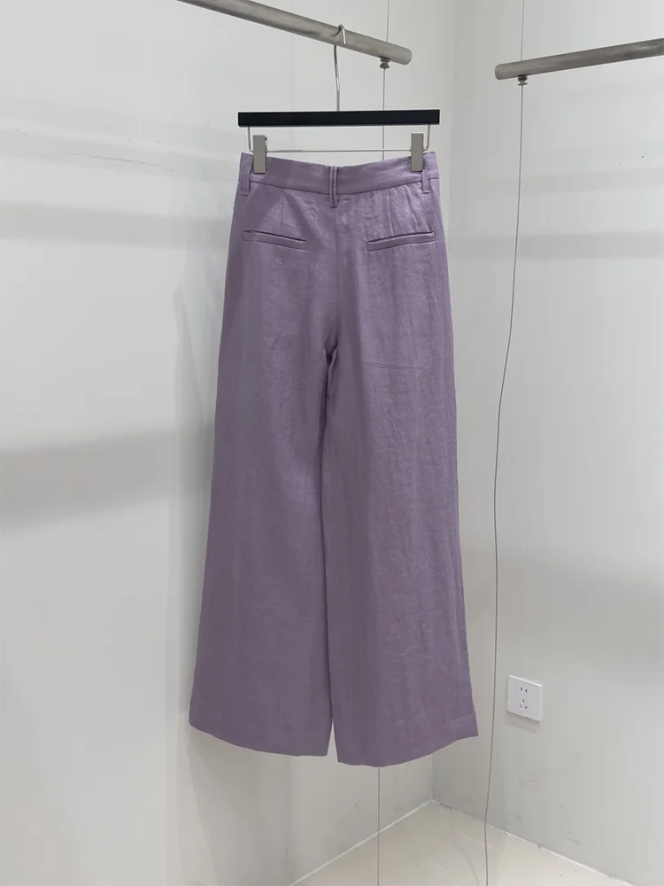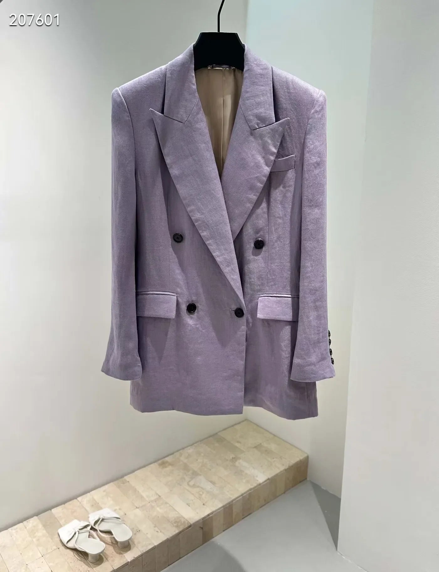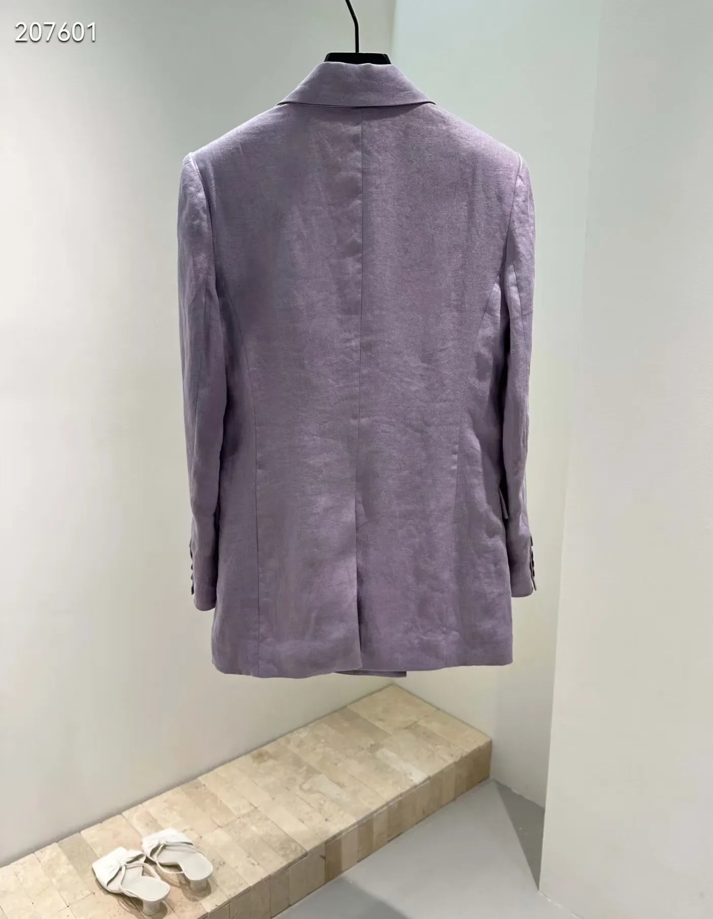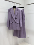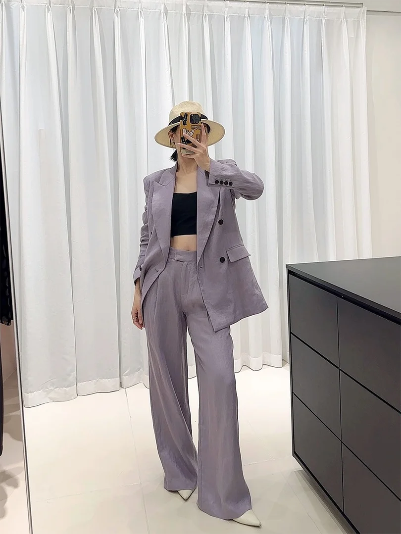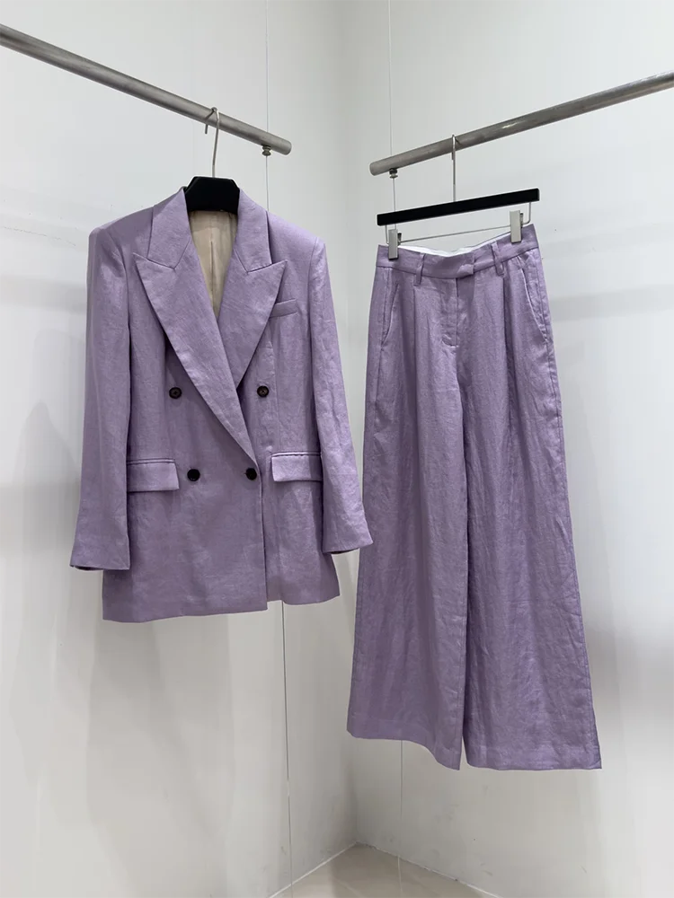 Spring and summer new light purple office women's linen suit elegant double breasted suit jacket long pants two-piece set