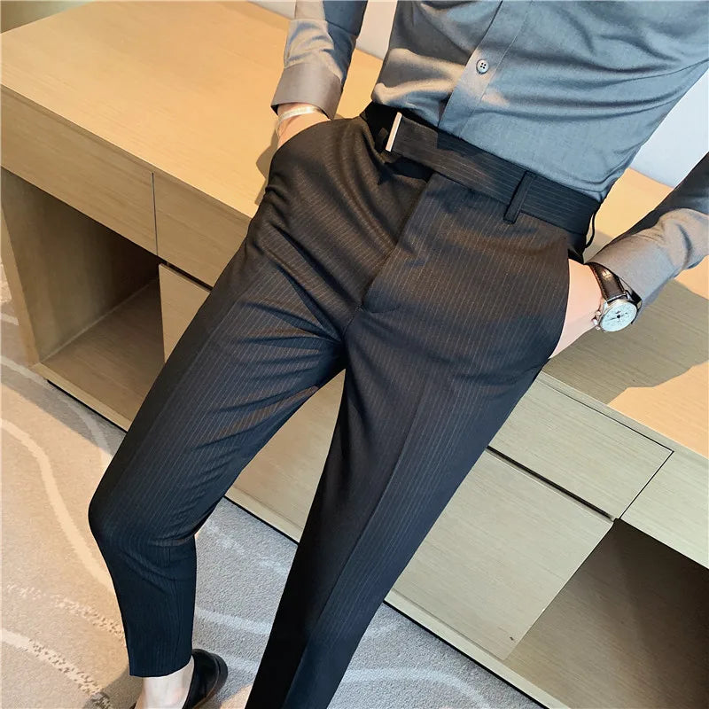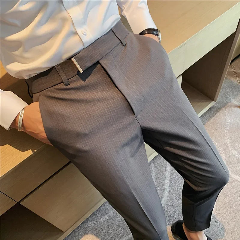 Spring Autumn Men Suit Pants Fashion British Style Business Office Mens Dress Pants High Quality Striped Slim Fit Men's Trousers