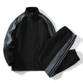Spring Autumn Men's Sporty Casual Collarless Jacket Three Bars Fashionable Couple Outfit Two-Piece Set Full Set of Outerwear