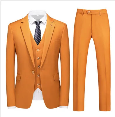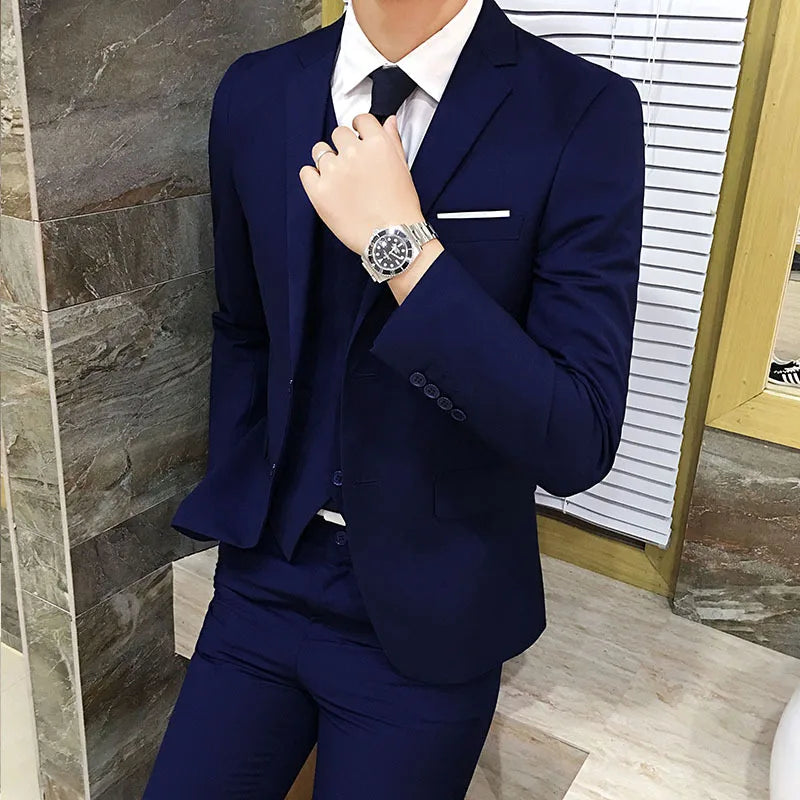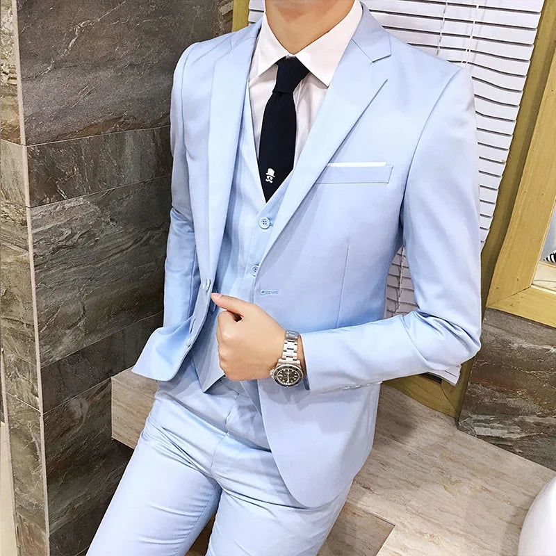 Spring Autumn New Fashion Men's Solid Color Slim Suit Sets Casual Trendy Business 3 Pieces Sets Blazers Waistcoat Pants Male
