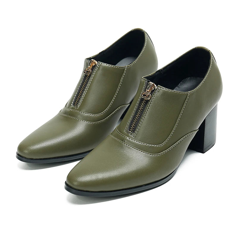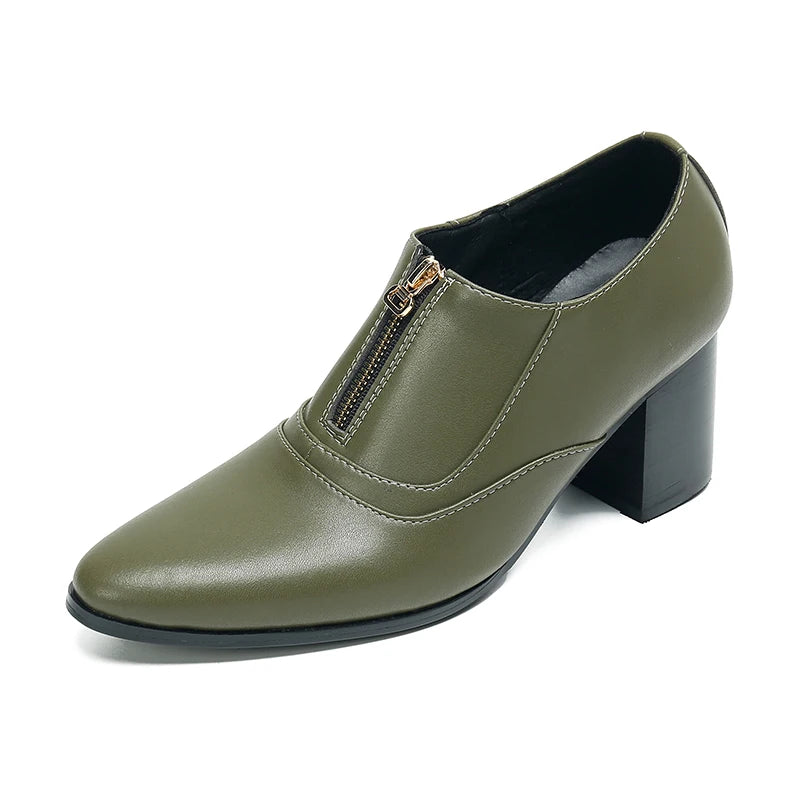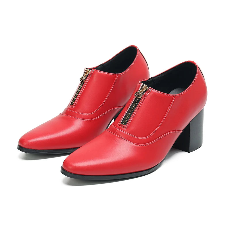 Spring New Men's Leather Dress Shoes Pointed Nightclub Party Ball Dress Ankle Boots Zipper Large High Heels Boots